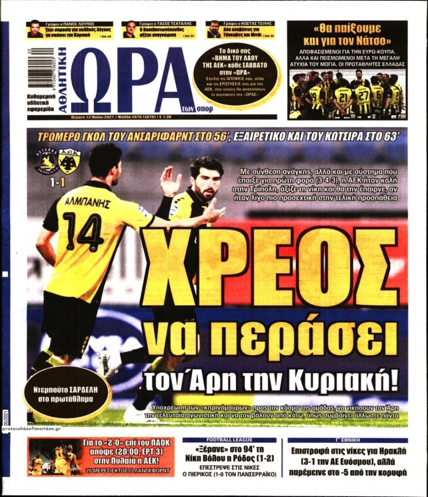 MEDIA Τα αθλητικά πρωτοσέλιδα, σήμερα Πέμπτη 13 Μαΐου FacebookTwitterPinterestWhatsApp Τα αθλητικά πρωτοσέλιδα, σήμερα Πέμπτη 13 Μαΐου: