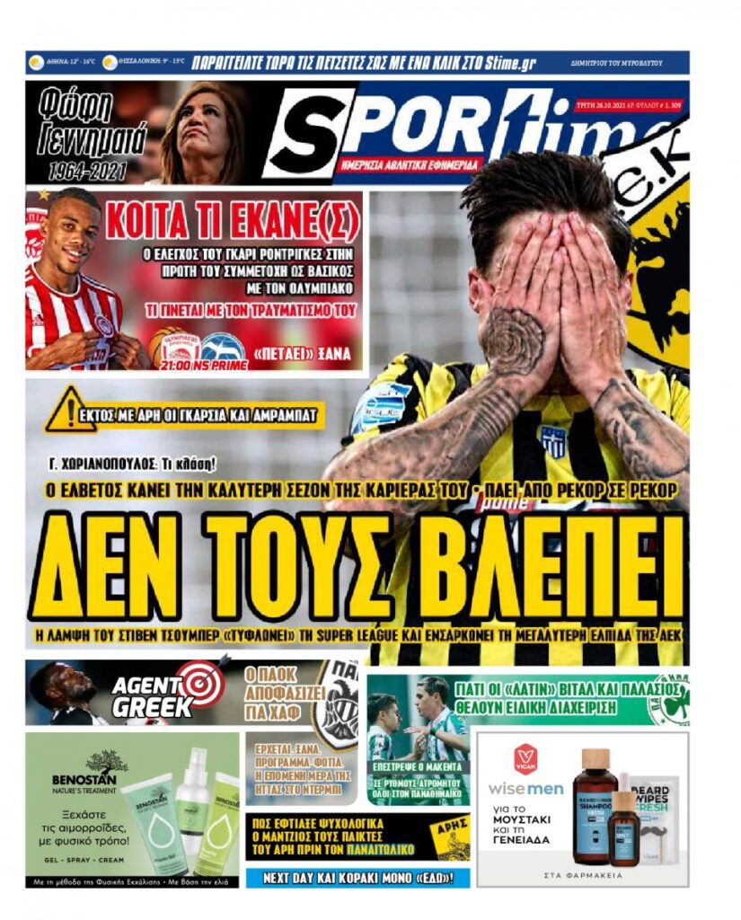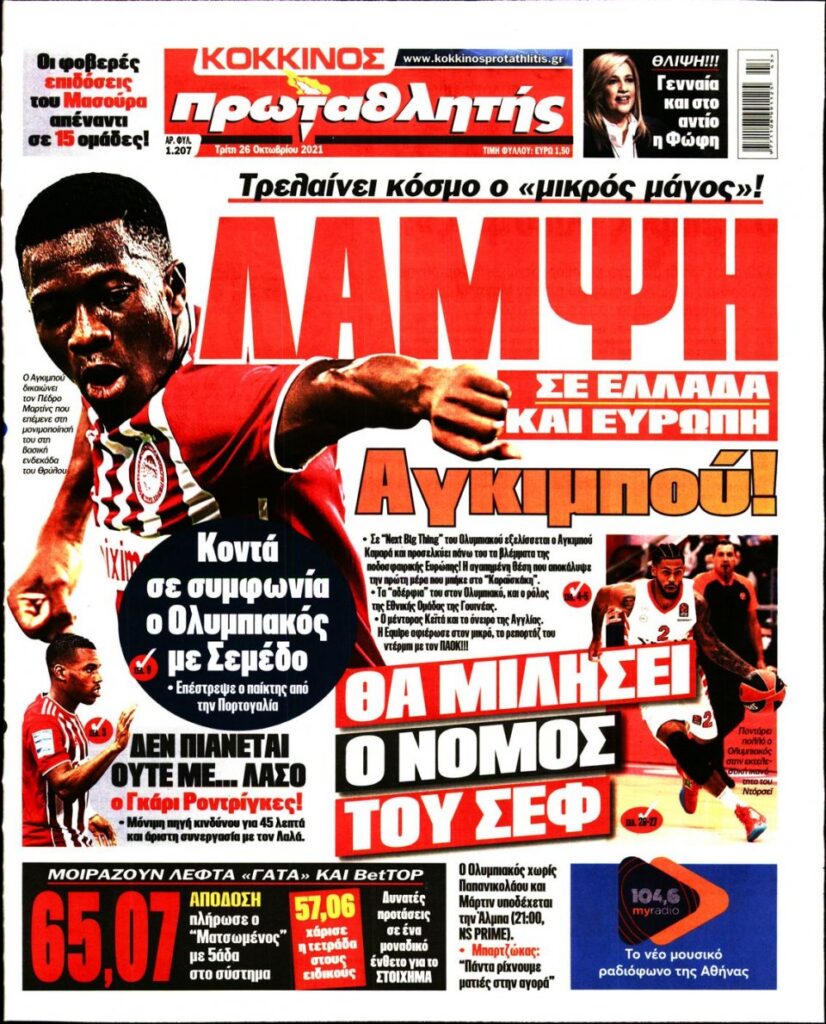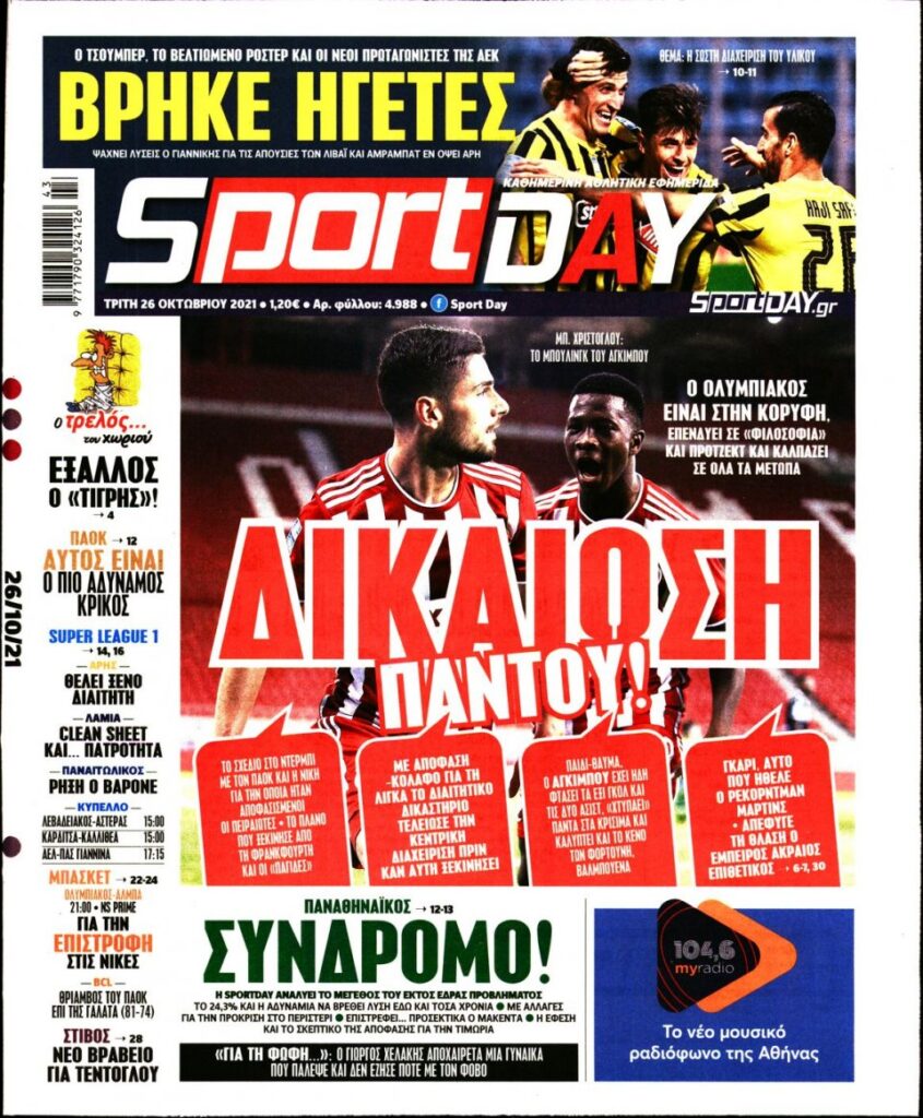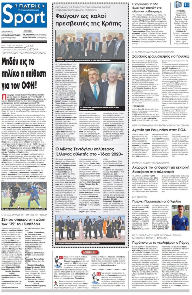 MEDIA Τα αθλητικά πρωτοσέλιδα, σήμερα Τρίτη 26 Οκτωβρίου FacebookTwitterPinterestWhatsApp Τα αθλητικά πρωτοσέλιδα, σήμερα Τρίτη 26 Οκτωβρίου