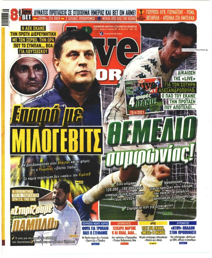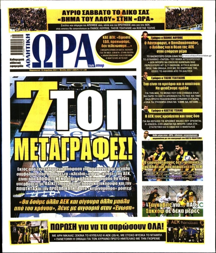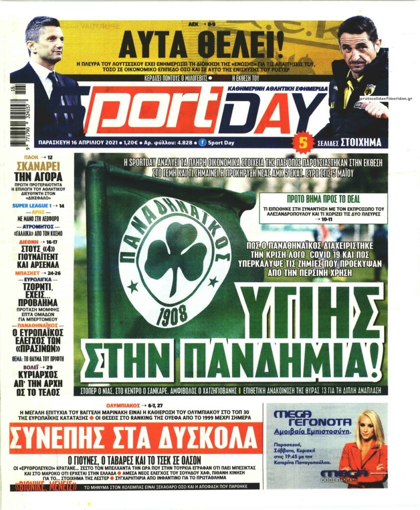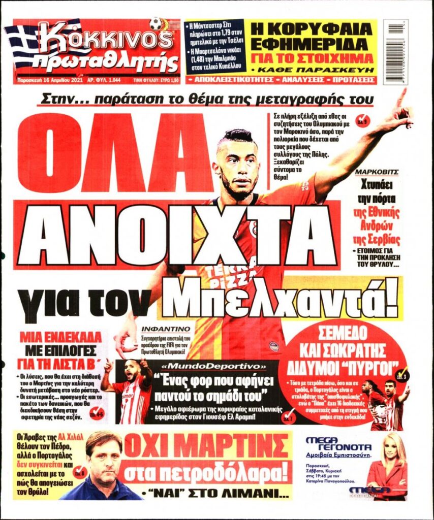 MEDIA Τα αθλητικά πρωτοσέλιδα της Παρασκευής, 16 Απριλίου FacebookTwitterPinterestWhatsApp Τα αθλητικά πρωτοσέλιδα της Παρασκευής, 16 Απριλίου: