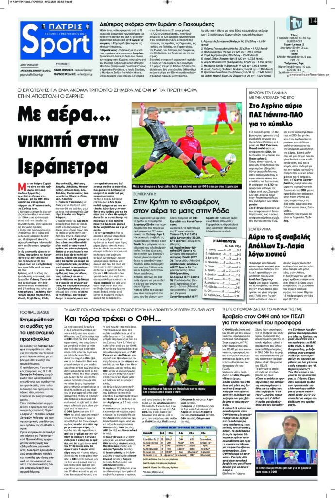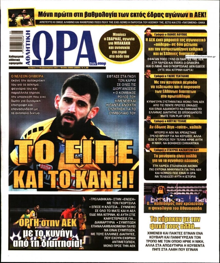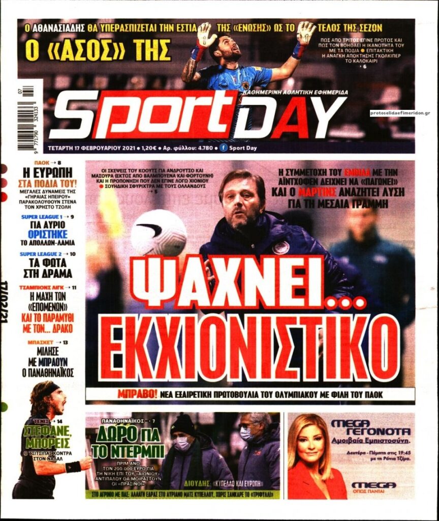 MEDIA Τα πρωτοσέλιδα των αθλητικών εφημερίδων, σήμερα Τετάρτη, 17 Φεβρουαρίου FacebookTwitterPinterestWhatsApp Τα πρωτοσέλιδα των αθλητικών εφημερίδων, σήμερα Τετάρτη, 17 Φεβρουαρίου: