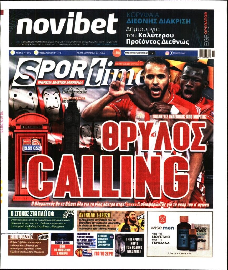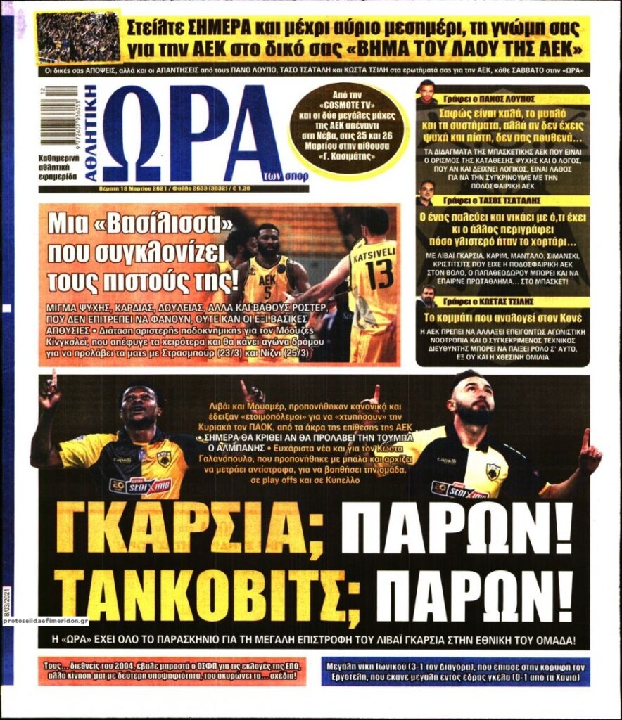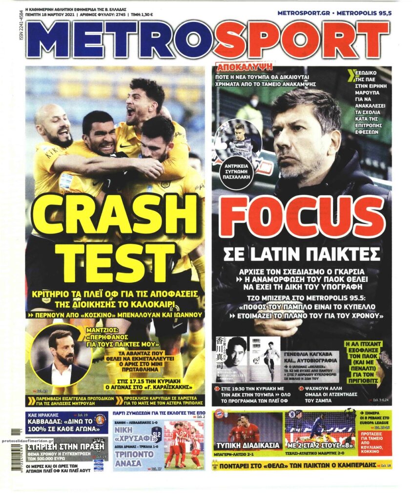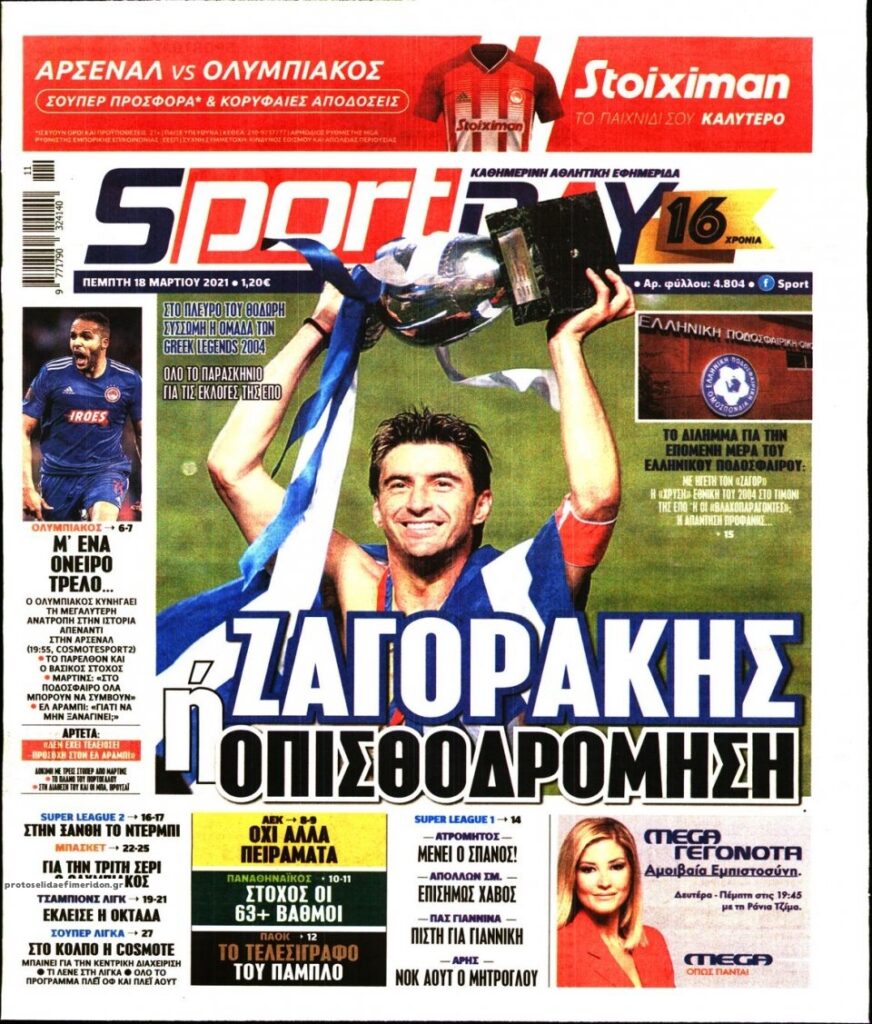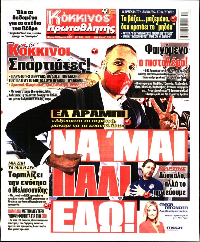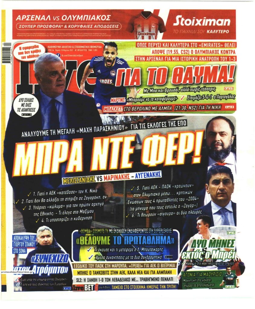 MEDIA Τα πρωτοσέλιδα των αθλητικών εφημερίδων, σήμερα Πέμπτη, 18 Μαρτίου FacebookTwitterPinterestWhatsApp Τα πρωτοσέλιδα των αθλητικών εφημερίδων, σήμερα Πέμπτη, 18 Μαρτίου: