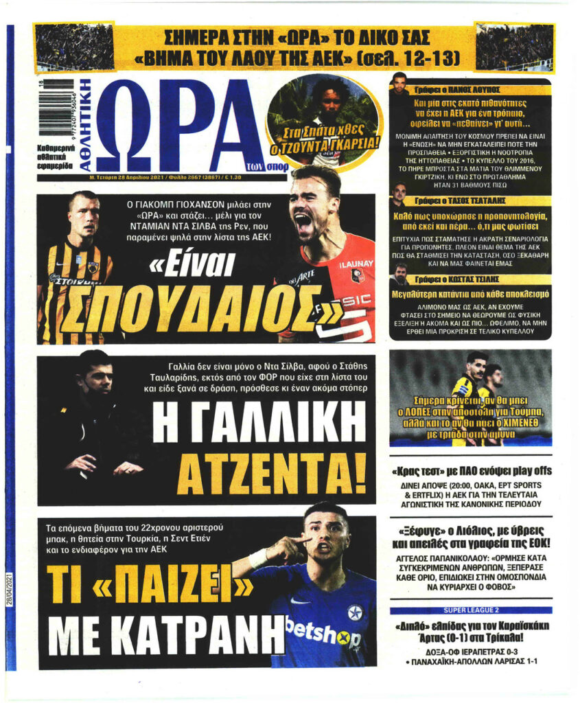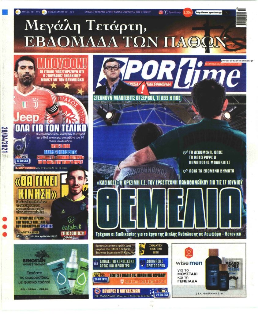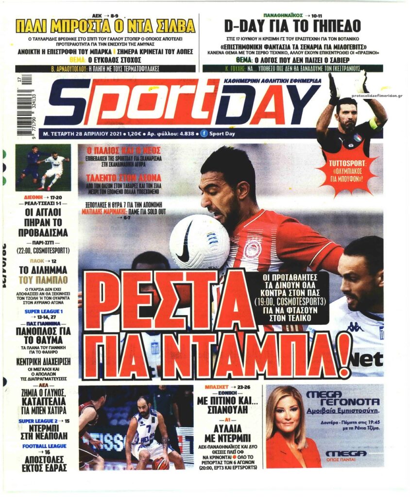 MEDIA Τα πρωτοσέλιδα των αθλητικών εφημερίδων, σήμερα Μ. Τετάρτη, 28 Απριλίου FacebookTwitterPinterestWhatsApp Τα πρωτοσέλιδα των αθλητικών εφημερίδων, σήμερα Μ. Τετάρτη, 28 Απριλίου: