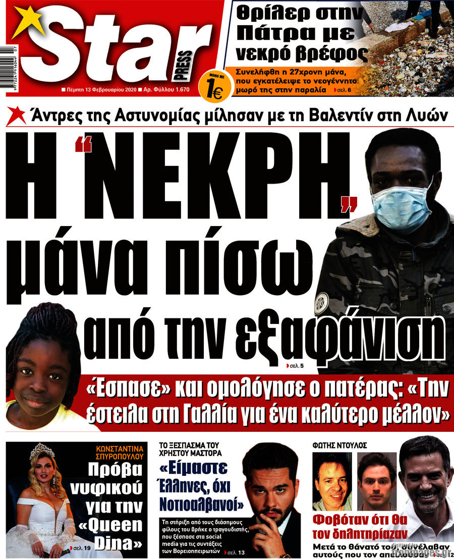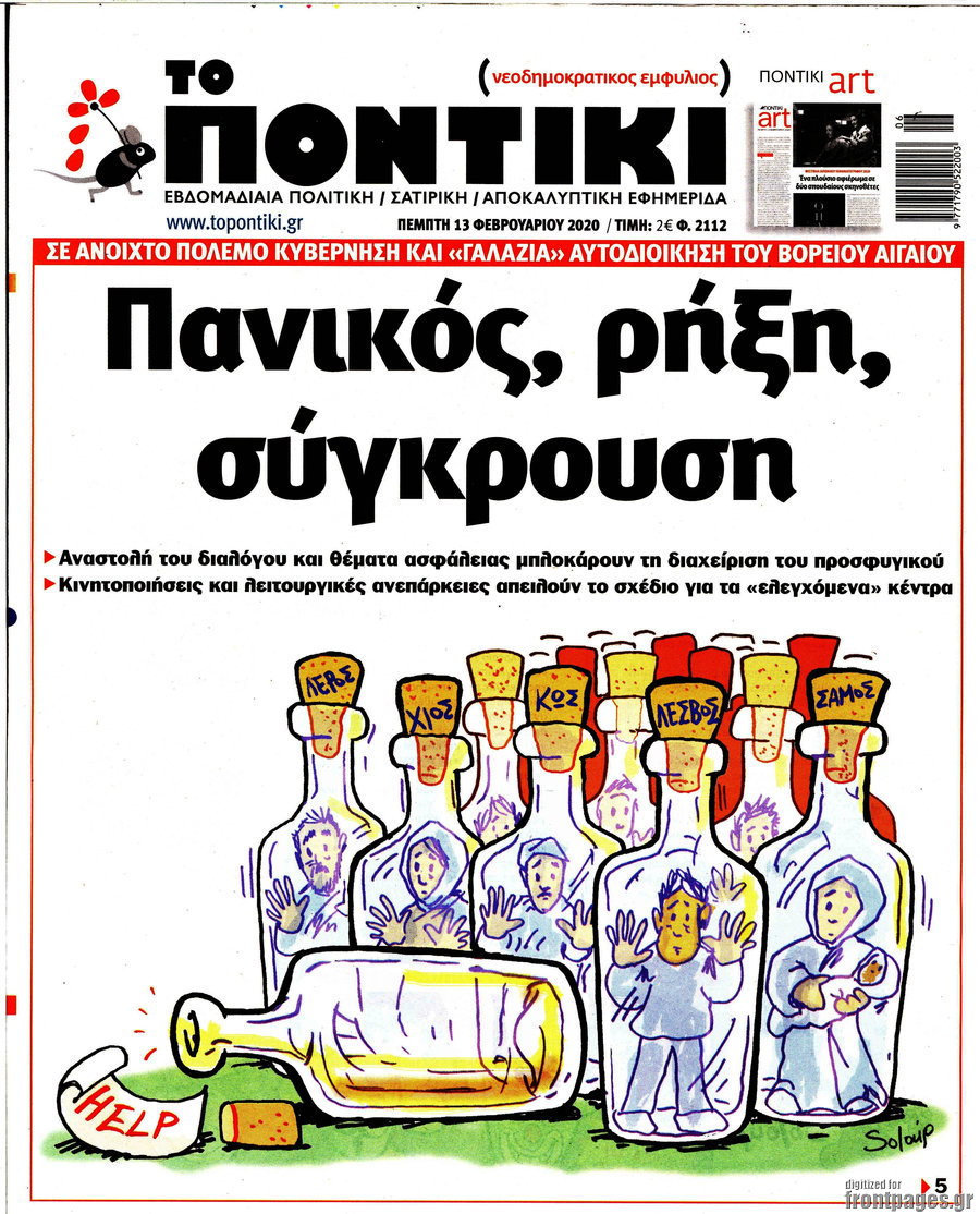 MEDIA Τα πρωτοσέλιδα των εφημερίδων της Πέμπτης 13 Φεβρουαρίου 2020 FacebookTwitterPinterestWhatsApp Οι πρώτες σελίδες των εφημερίδων της Πέμπτης 13 Φεβρουαρίου 2020