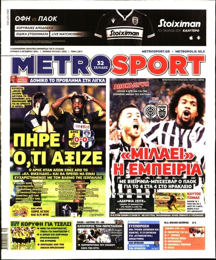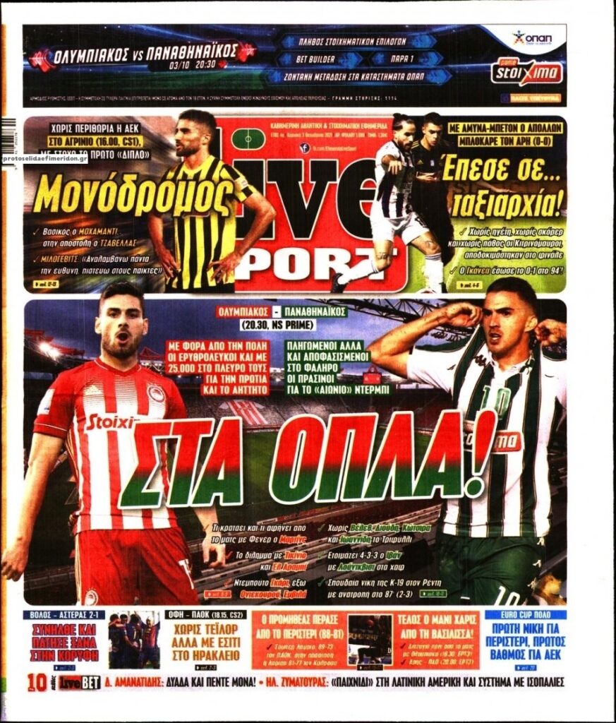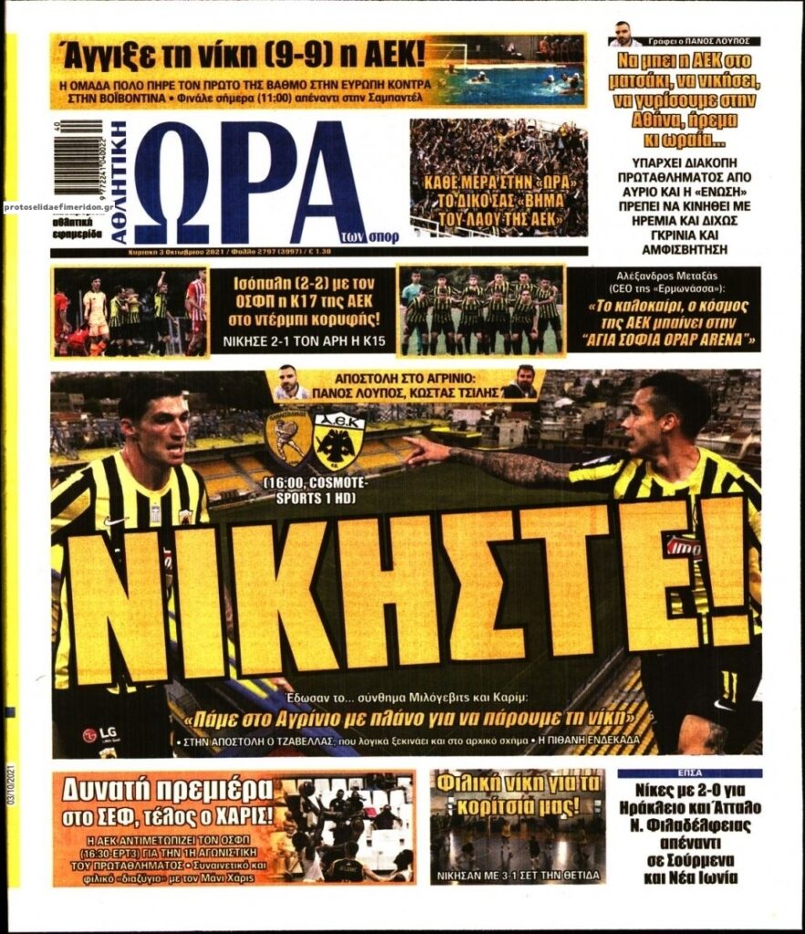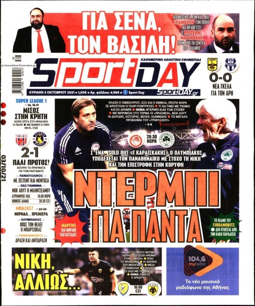 MEDIA Oι αθλητικές εφημερίδες, σήμερα Κυριακή 3 Οκτωβρίου FacebookTwitterPinterestWhatsApp Oι αθλητικές εφημερίδες, σήμερα Κυριακή 3 Οκτωβρίου