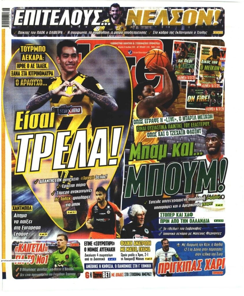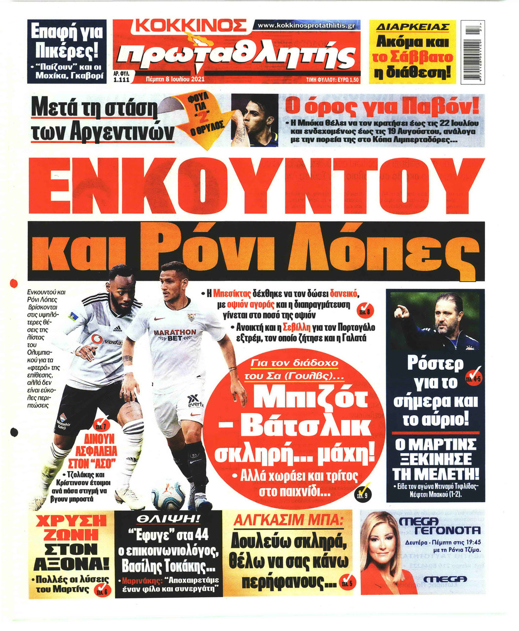 MEDIA Oι αθλητικές εφημερίδες, σήμερα Πέμπτη 8 Ιουλίου FacebookTwitterPinterestWhatsApp Oι αθλητικές εφημερίδες, σήμερα Πέμπτη 8 Ιουλίου: