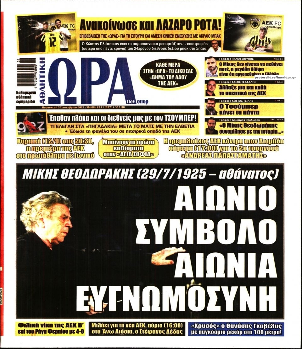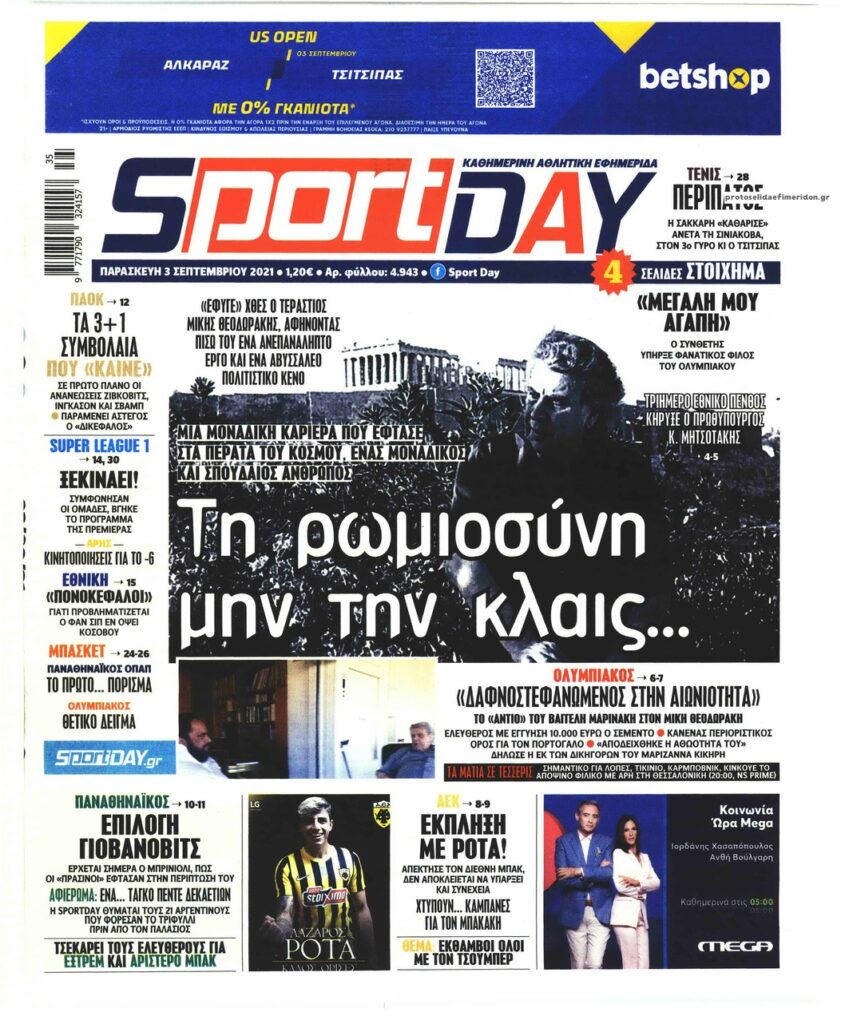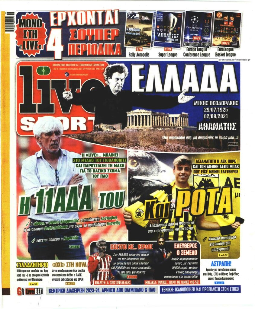 MEDIA Oι αθλητικές εφημερίδες, σήμερα Παρασκευή 3 Σεπτεμβρίου FacebookTwitterPinterestWhatsApp Oι αθλητικές εφημερίδες, σήμερα Παρασκευή 3 Σεπτεμβρίου