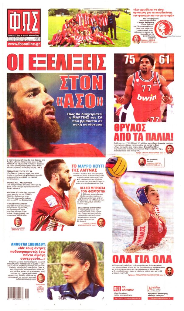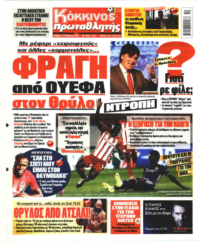 MEDIA Oι αθλητικές εφημερίδες, σήμερα Σάββατο, 13 Μαρτίου FacebookTwitterPinterestWhatsApp Oι αθλητικές εφημερίδες, σήμερα Σάββατο, 13 Μαρτίου: