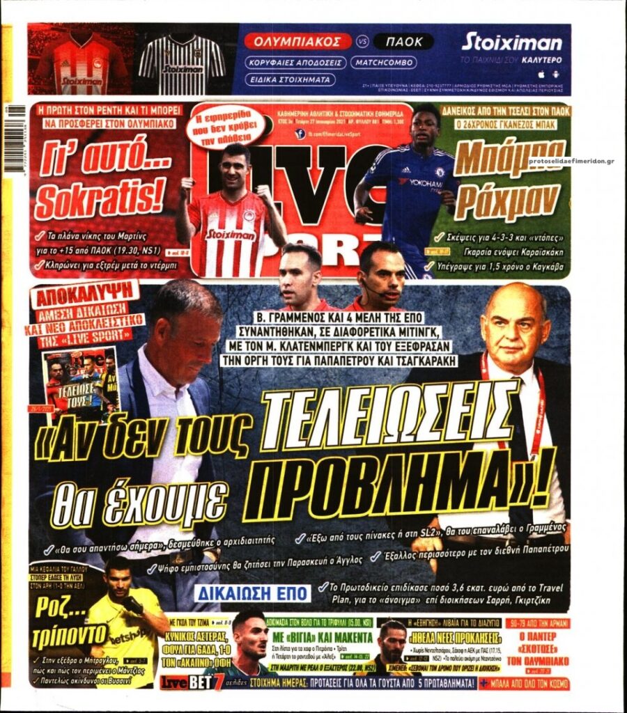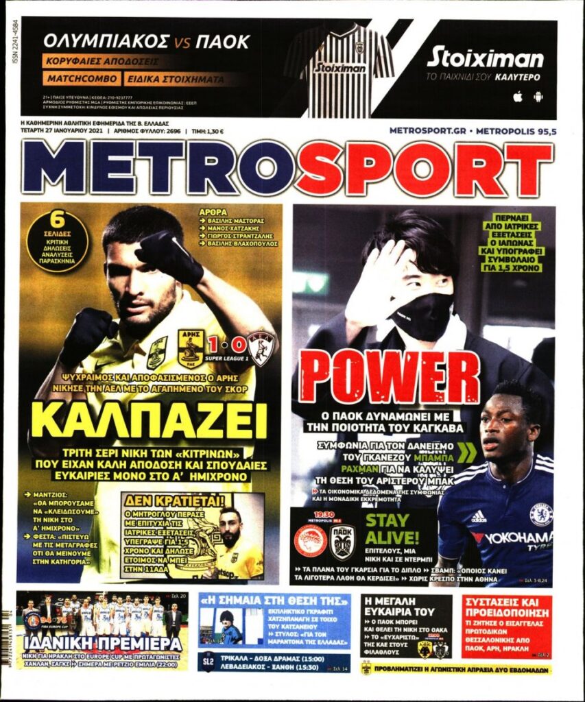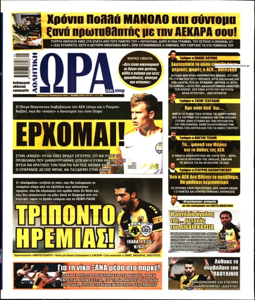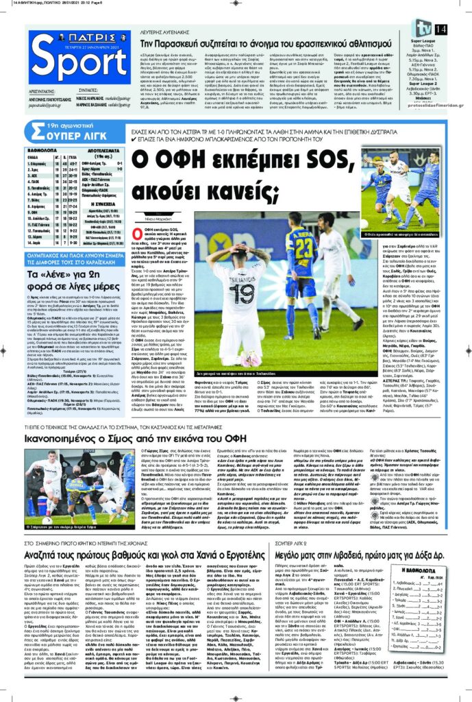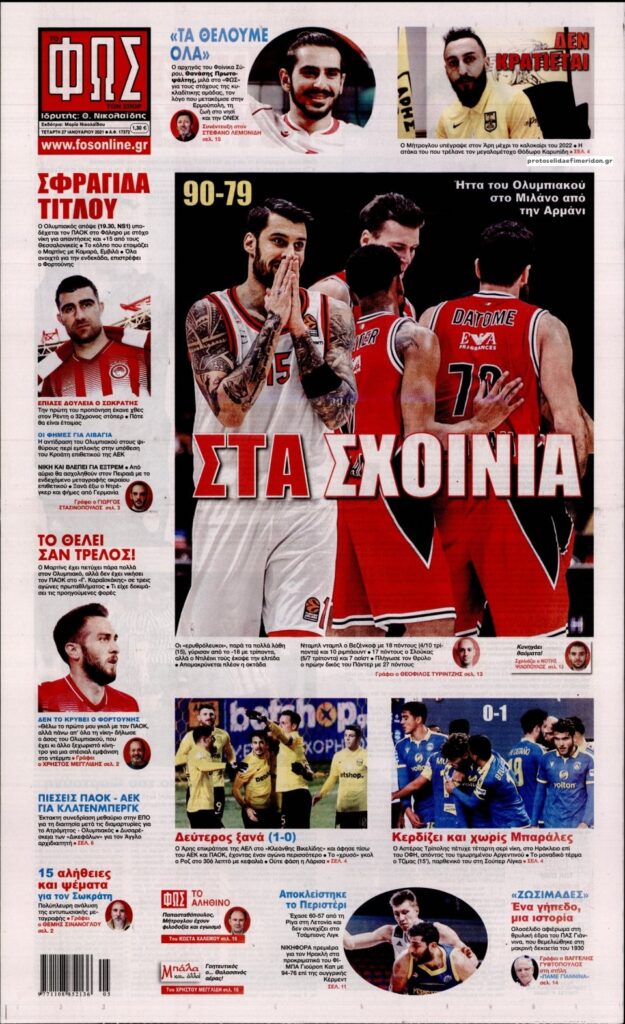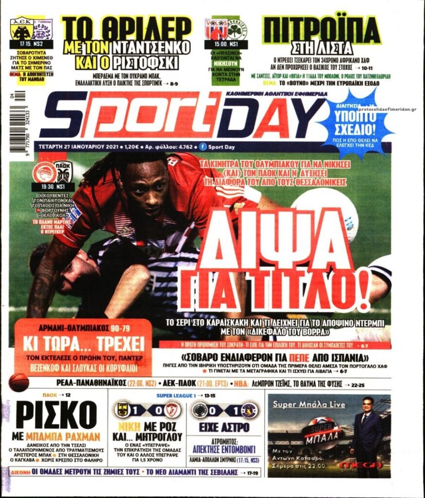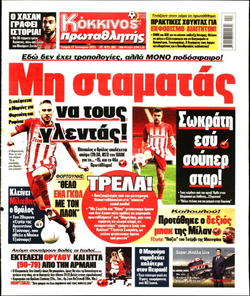 MEDIA Oι πρώτες σελίδες των αθλητικών εφημερίδων, σήμερα Τετάρτη 27 Ιανουαρίου FacebookTwitterPinterestWhatsApp Oι πρώτες σελίδες των αθλητικών εφημερίδων, σήμερα Τετάρτη 27 Ιανουαρίου: