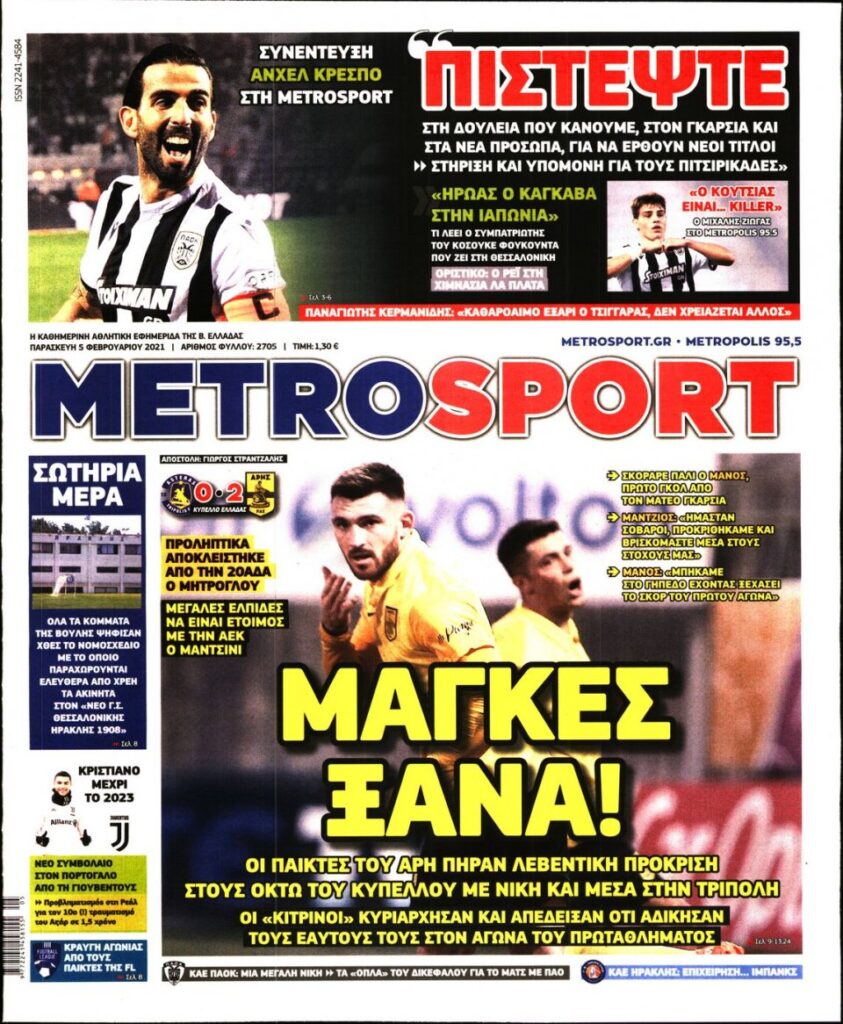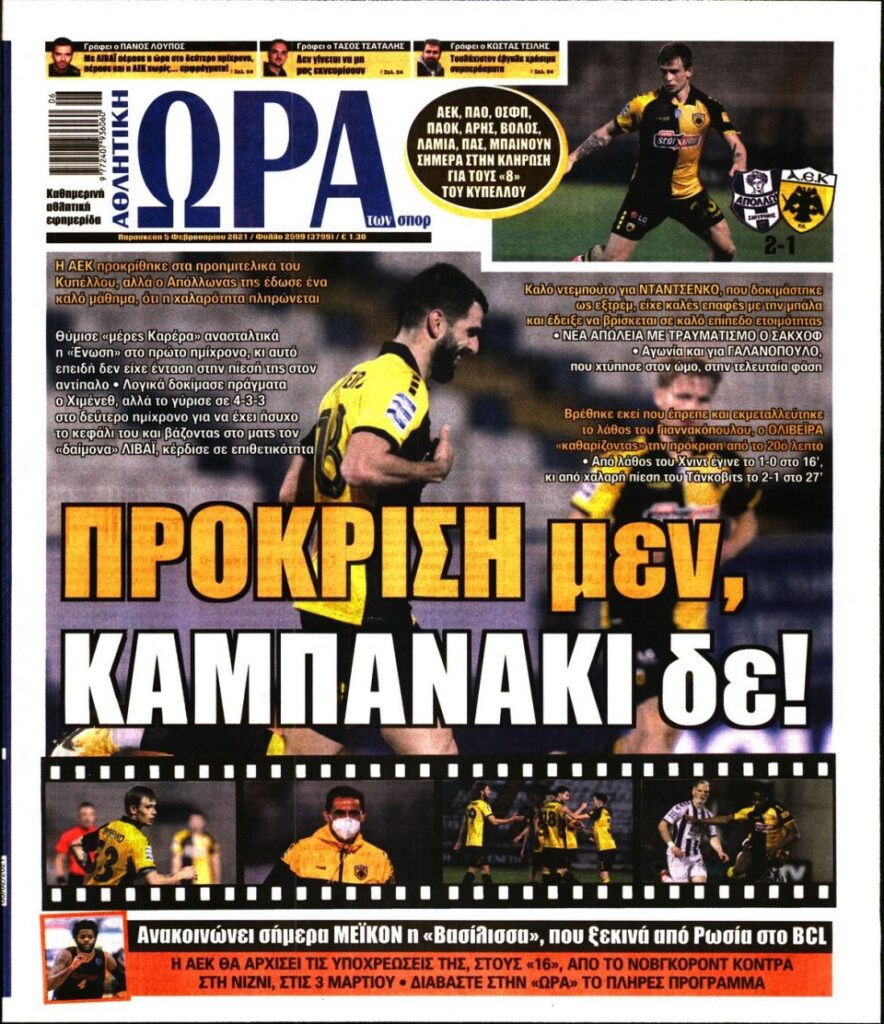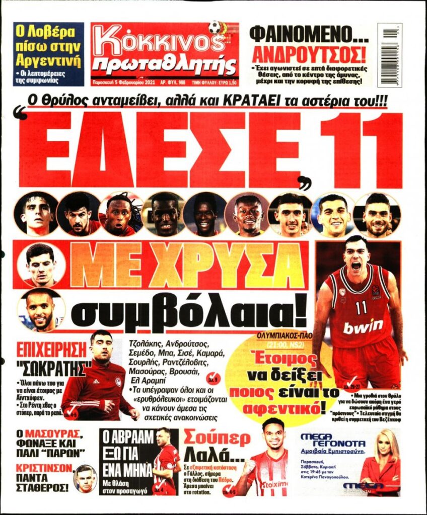 MEDIA Oι πρώτες σελίδες των αθλητικών εφημερίδων, σήμερα Παρασκευή 5 Φεβρουαρίου FacebookTwitterPinterestWhatsApp Oι πρώτες σελίδες των αθλητικών εφημερίδων, σήμερα Παρασκευή 5 Φεβρουαρίου: