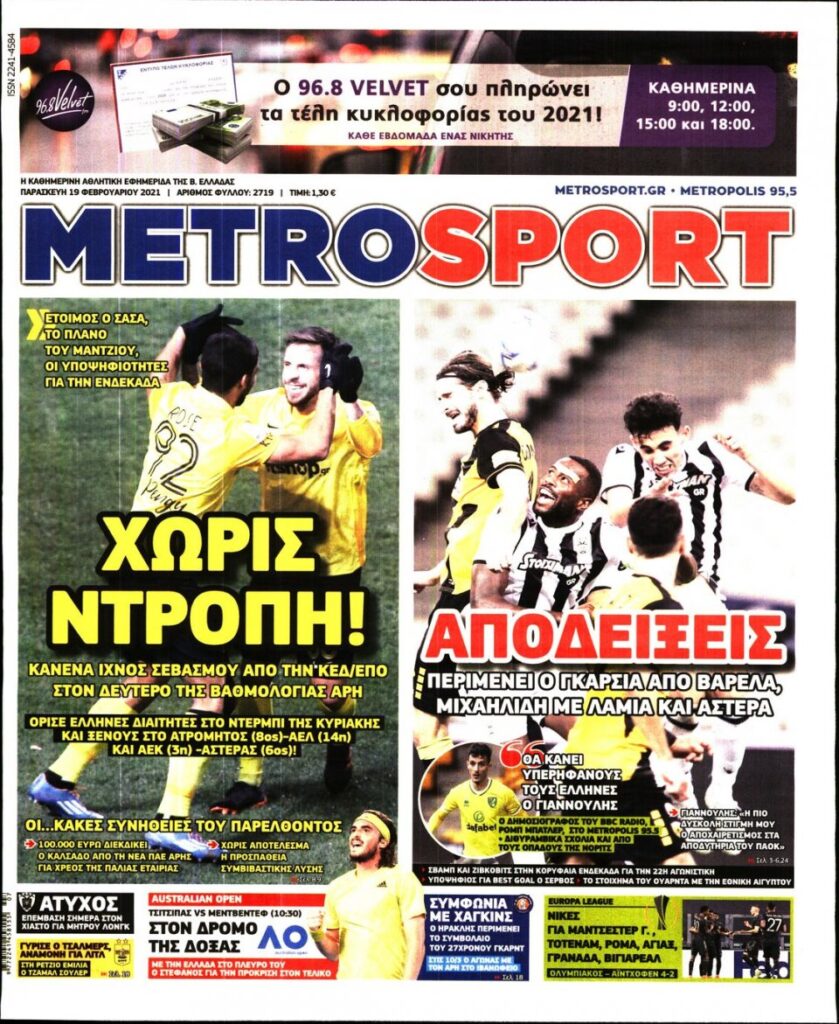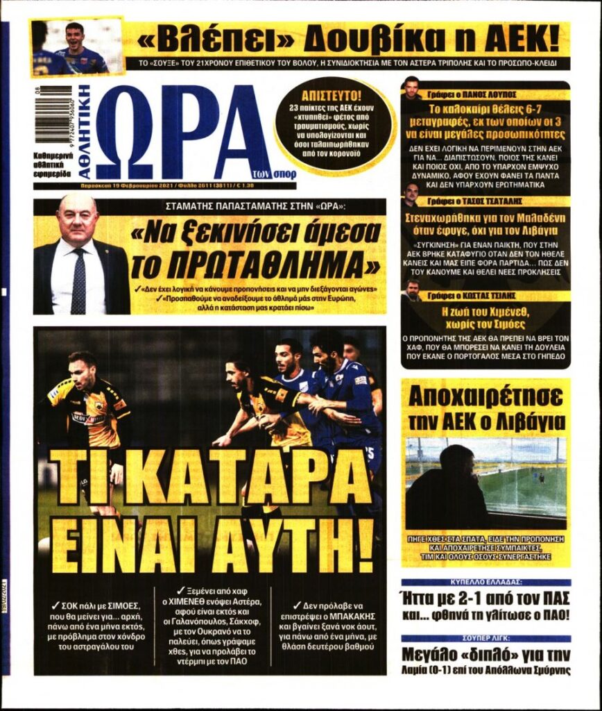 MEDIA Oι πρώτες σελίδες των αθλητικών εφημερίδων, σήμερα Παρασκευή, 19 Φεβρουαρίου FacebookTwitterPinterestWhatsApp Oι πρώτες σελίδες των αθλητικών εφημερίδων, σήμερα Παρασκευή, 19 Φεβρουαρίου: