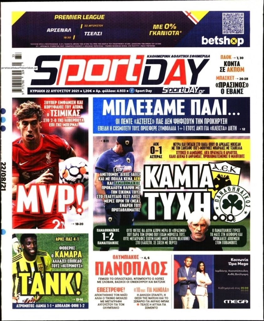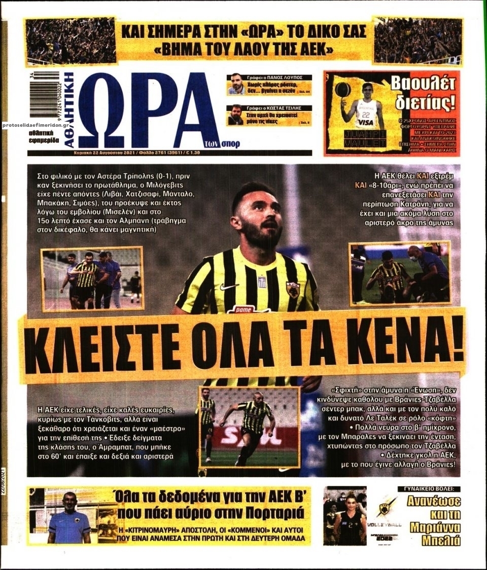 MEDIA Oι πρώτες σελίδες των αθλητικών εφημερίδων, σήμερα Κυριακή 22 Αυγούστου FacebookTwitterPinterestWhatsApp Oι πρώτες σελίδες των αθλητικών εφημερίδων, σήμερα Κυριακή 22 Αυγούστου