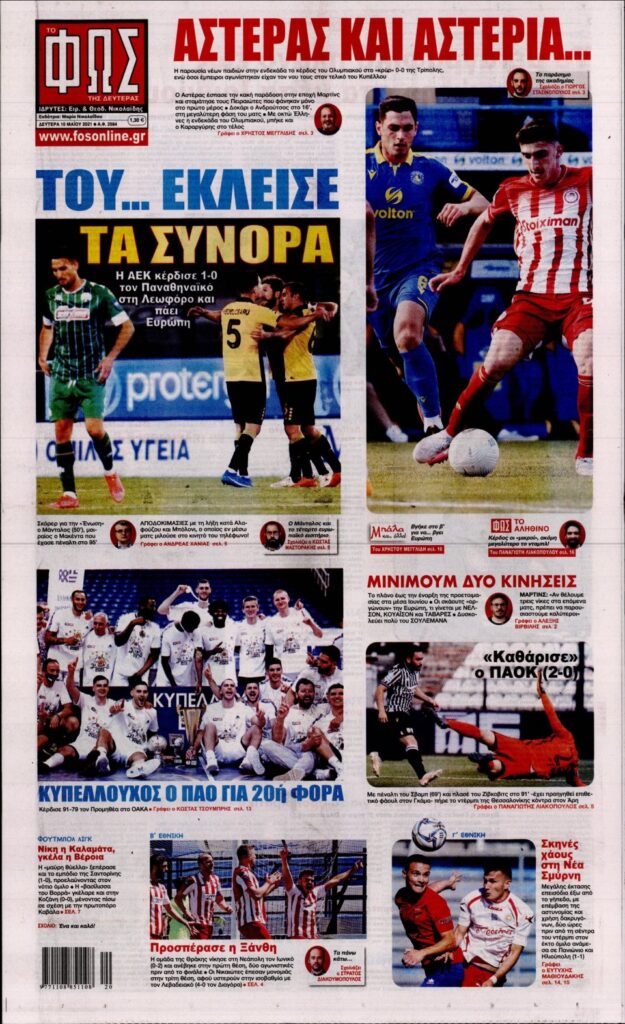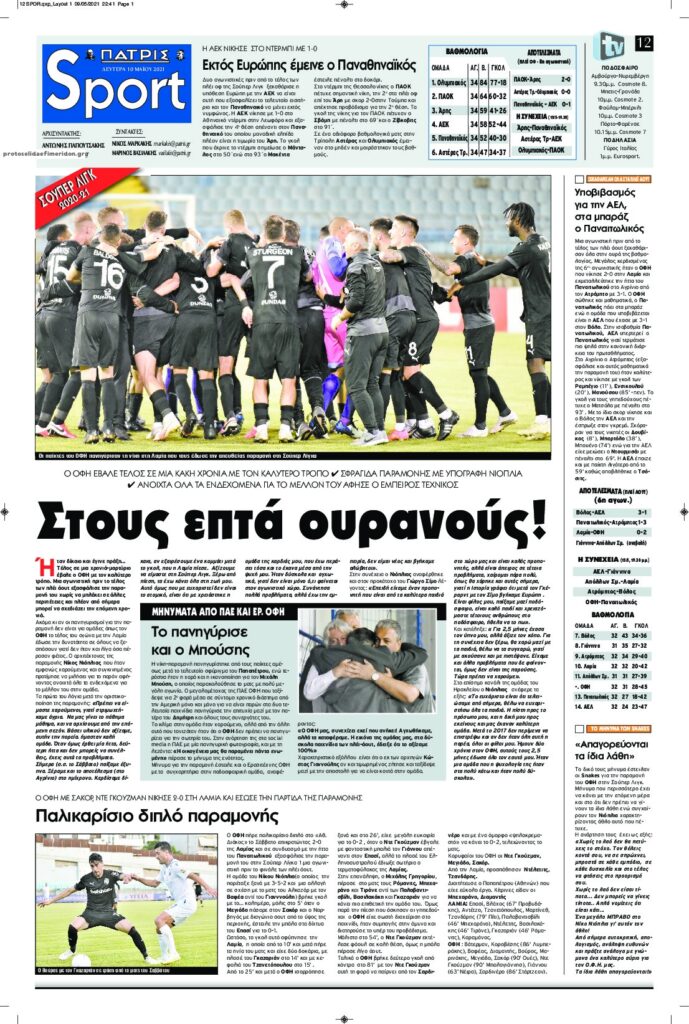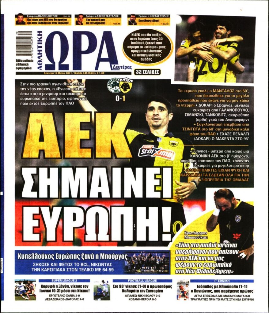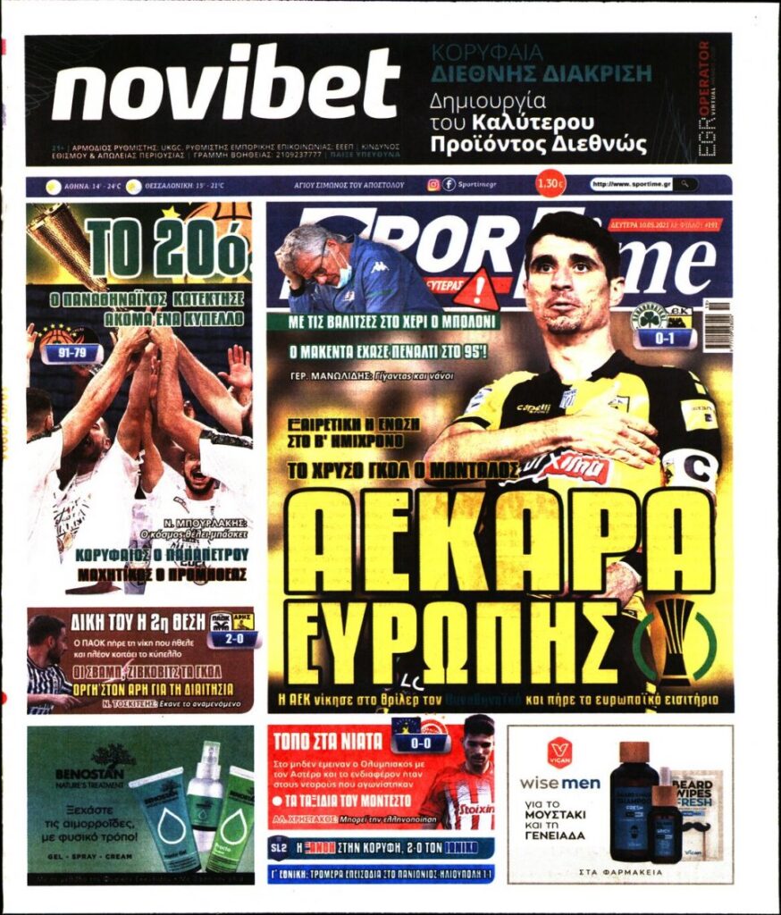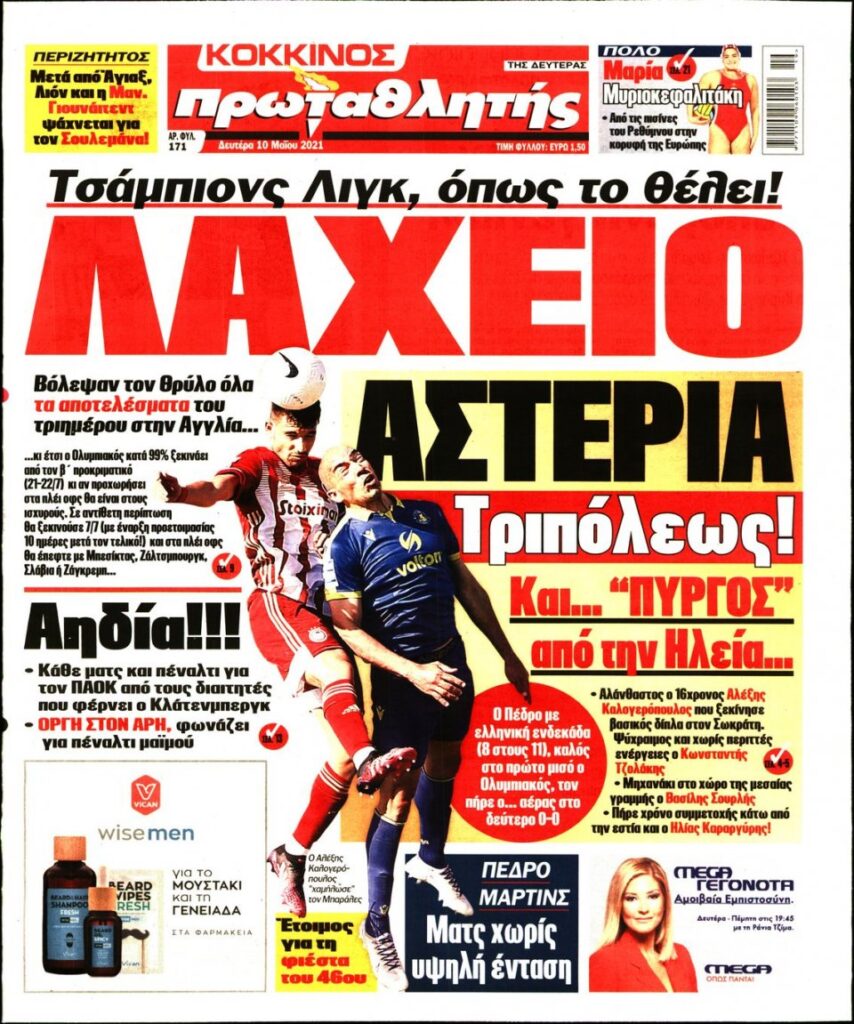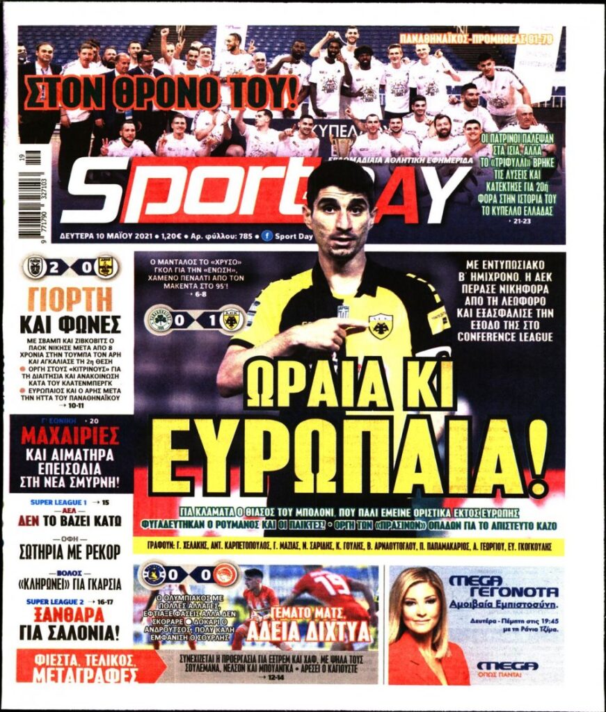 MEDIA Oι αθλητικές εφημερίδες σήμερα, Δευτέρα 10 Μαΐου FacebookTwitterPinterestWhatsApp Oι αθλητικές εφημερίδες σήμερα, Δευτέρα 10 Μαΐου: