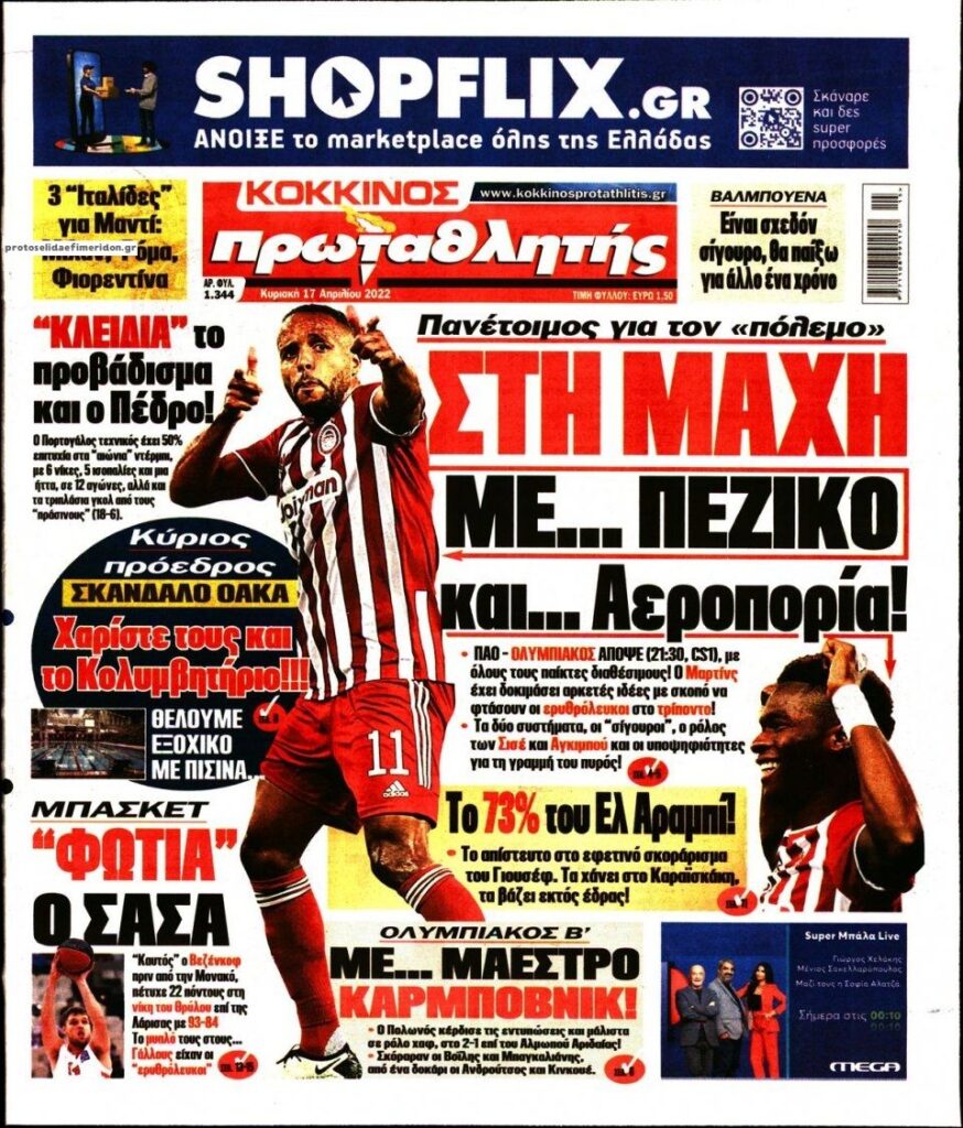 MEDIA Oι αθλητικές εφημερίδες, σήμερα Κυριακή 17 Απριλίου FacebookTwitterPinterestWhatsApp Oι αθλητικές εφημερίδες, σήμερα Κυριακή 17 Απριλίου