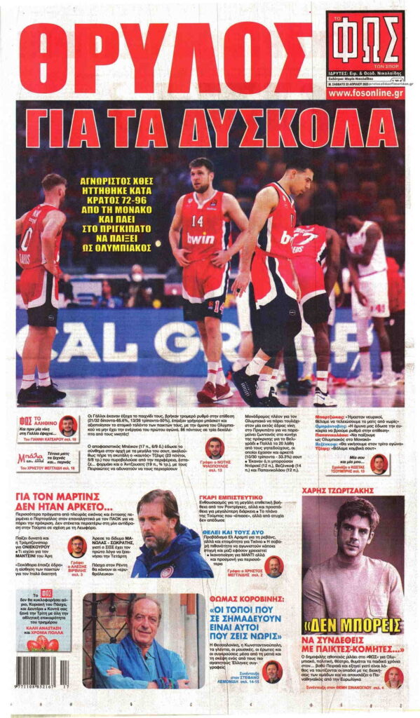 MEDIA Oι αθλητικές εφημερίδες, σήμερα Μ. Σάββατο 23 Απριλίου FacebookTwitterPinterestWhatsApp Oι αθλητικές εφημερίδες, σήμερα Μ. Σάββατο 23 Απριλίου