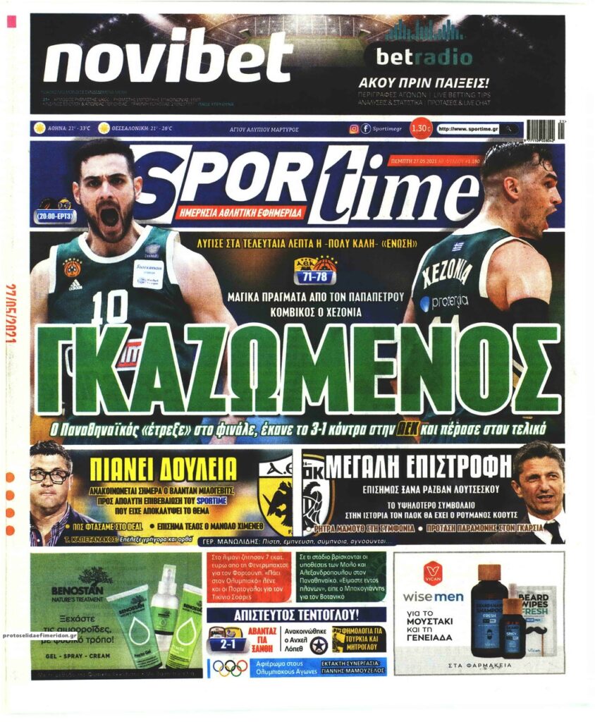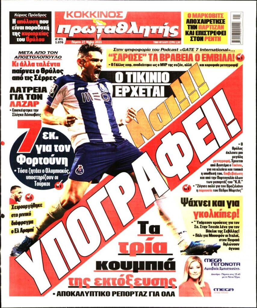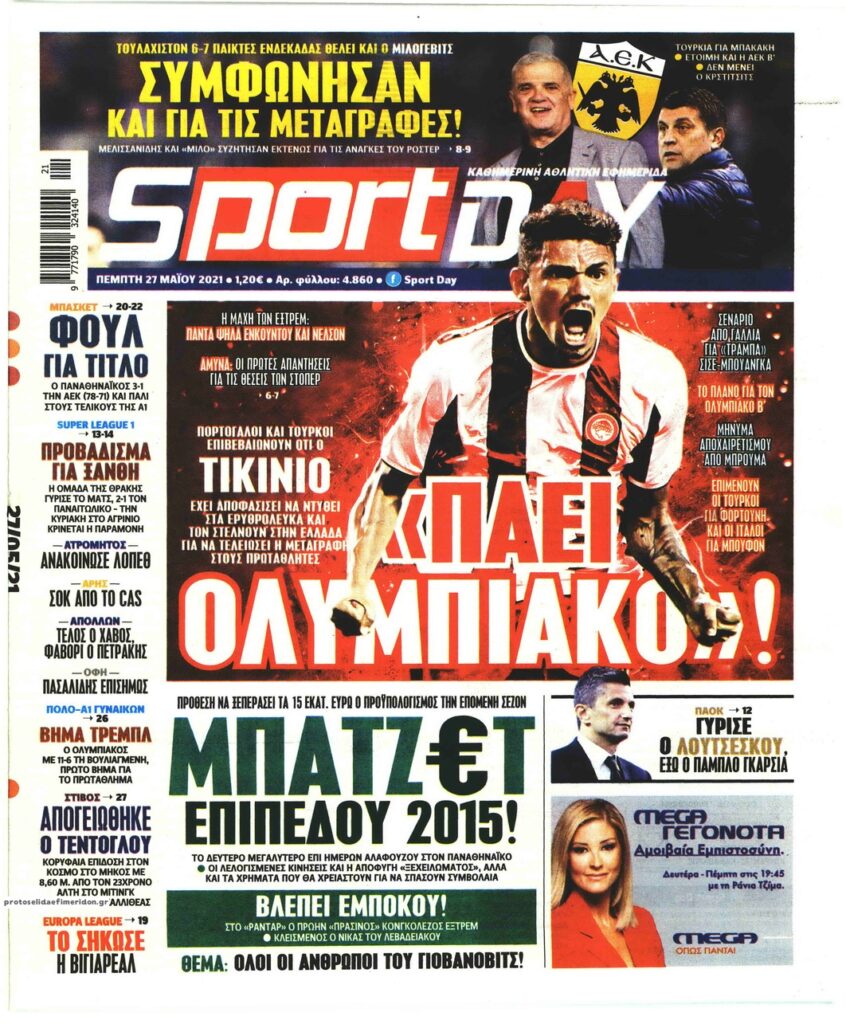 MEDIA Oι αθλητικές εφημερίδες, σήμερα Πέμπτη, 27 Μαΐου FacebookTwitterPinterestWhatsApp Oι αθλητικές εφημερίδες, σήμερα Πέμπτη, 27 Μαΐου: