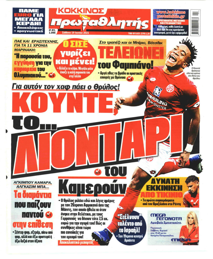MEDIA Oι αθλητικές εφημερίδες, σήμερα Σάββατο 19 Ιουνίου FacebookTwitterPinterestWhatsApp Oι αθλητικές εφημερίδες, σήμερα Σάββατο 19 Ιουνίου: