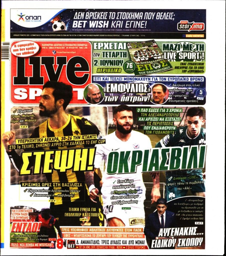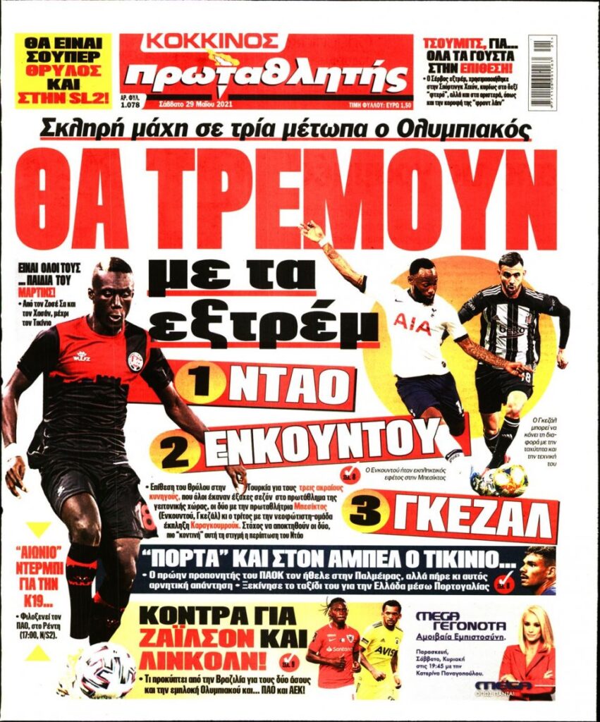 MEDIA Oι αθλητικές εφημερίδες, σήμερα Σάββατο 29 Μαΐου FacebookTwitterPinterestWhatsApp Oι αθλητικές εφημερίδες, σήμερα Σάββατο 29 Μαΐου: