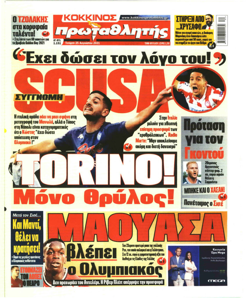 MEDIA Oι αθλητικές εφημερίδες, σήμερα Τετάρτη 25 Αυγούστου FacebookTwitterPinterestWhatsApp Oι αθλητικές εφημερίδες, σήμερα Τετάρτη 25 Αυγούστου