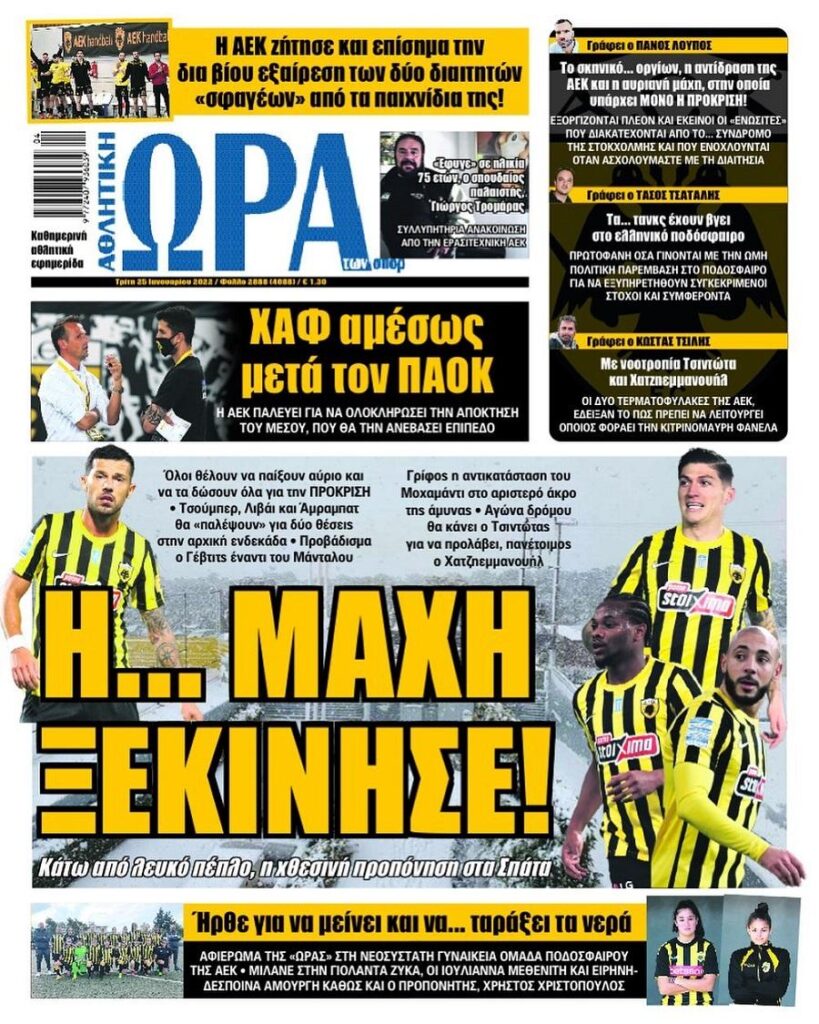 MEDIA Oι αθλητικές εφημερίδες, σήμερα Τρίτη 25 Ιανουαρίου 2022 FacebookTwitterPinterestWhatsApp Oι αθλητικές εφημερίδες, σήμερα Τρίτη 25 Ιανουαρίου 2022