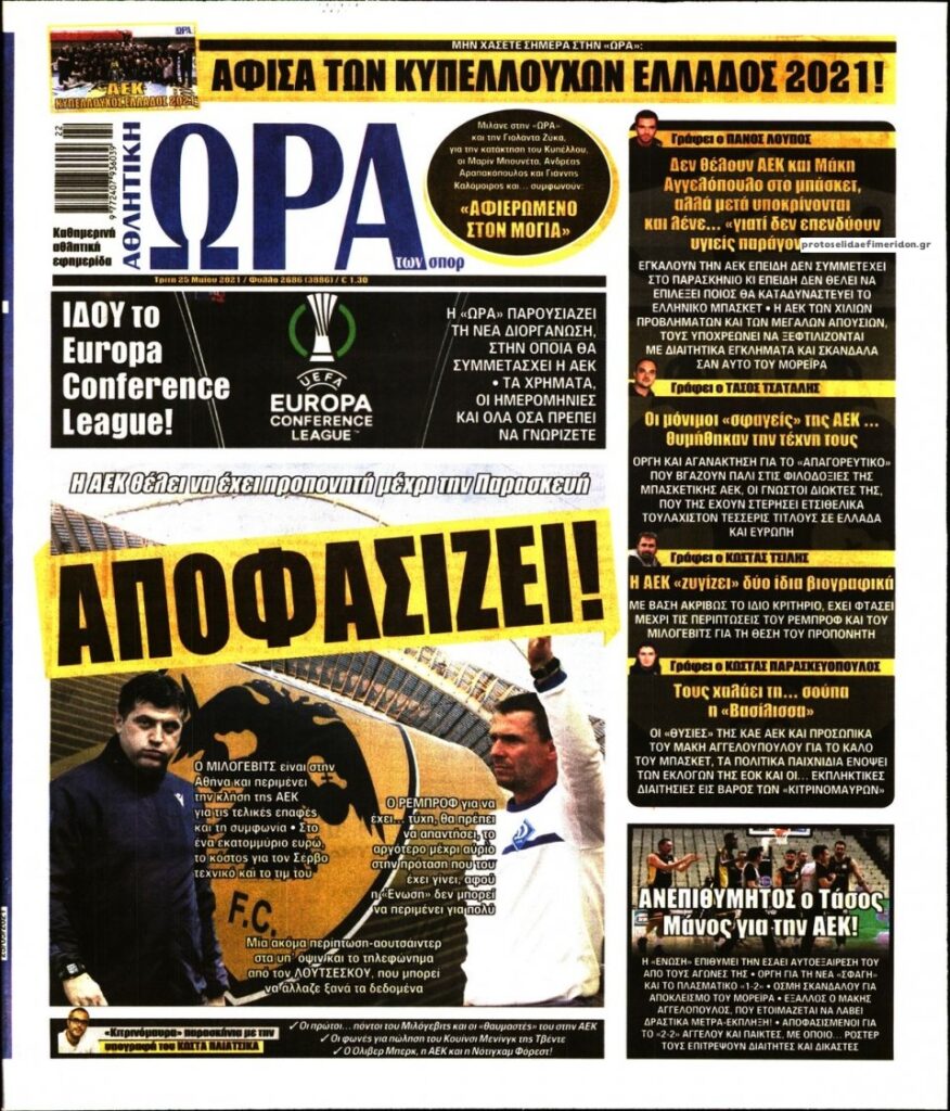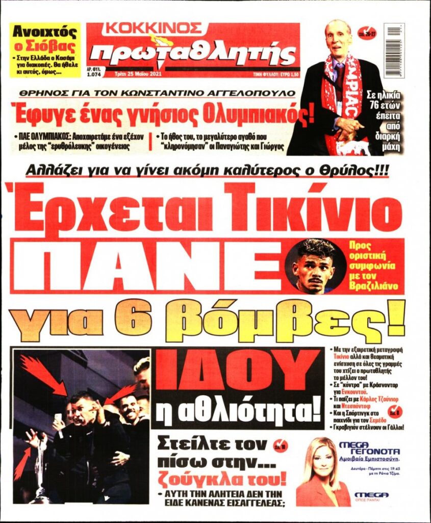 MEDIA Oι αθλητικές εφημερίδες, σήμερα Τρίτη, 25 Μαΐου FacebookTwitterPinterestWhatsApp Oι αθλητικές εφημερίδες, σήμερα Τρίτη, 25 Μαΐου: