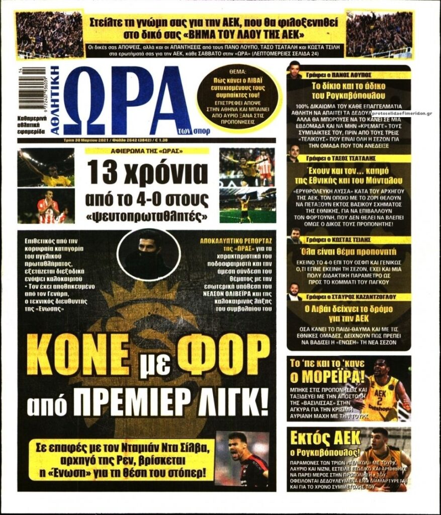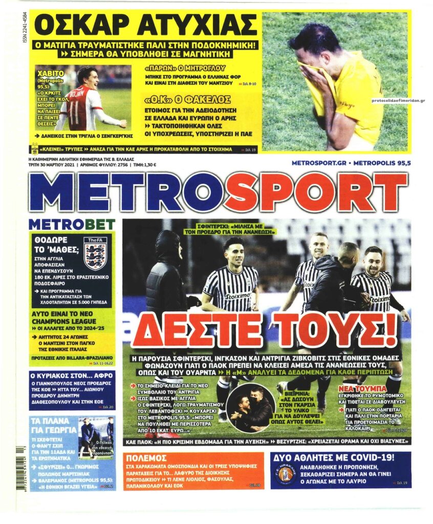 MEDIA Oι αθλητικές εφημερίδες, σήμερα Τρίτη, 30 Μαρτίου FacebookTwitterPinterestWhatsApp Oι αθλητικές εφημερίδες, σήμερα Τρίτη, 30 Μαρτίου: