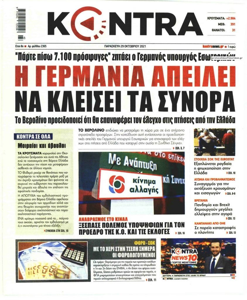MEDIA Oι εφημερίδες σήμερα, Παρασκευή 29 Οκτωβρίου FacebookTwitterPinterestWhatsApp Oι εφημερίδες σήμερα, Παρασκευή 29 Οκτωβρίου