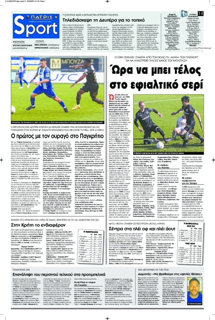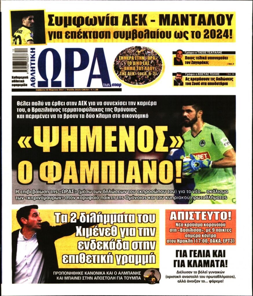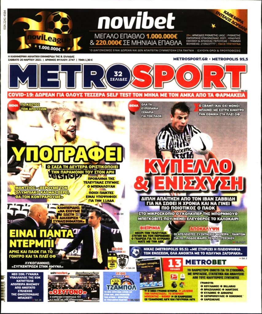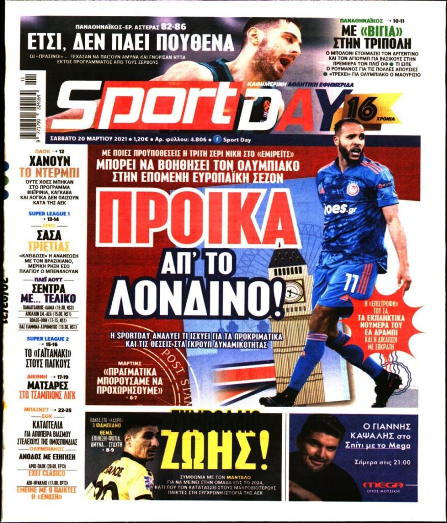 MEDIA Oι πρώτες σελίδες των αθλητικών εφημερίδων, σήμερα Σάββατο, 20 Μαρτίου FacebookTwitterPinterestWhatsApp Oι πρώτες σελίδες των αθλητικών εφημερίδων, σήμερα Σάββατο, 20 Μαρτίου: