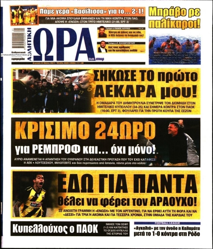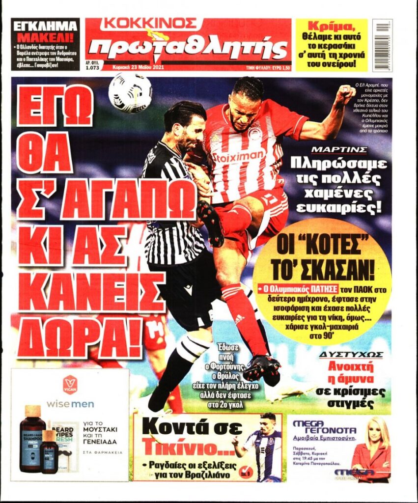 MEDIA Oι πρώτες σελίδες των αθλητικών εφημερίδων, σήμερα Κυριακή, 23 Μαΐου FacebookTwitterPinterestWhatsApp Oι πρώτες σελίδες των αθλητικών εφημερίδων, σήμερα Κυριακή, 23 Μαΐου: