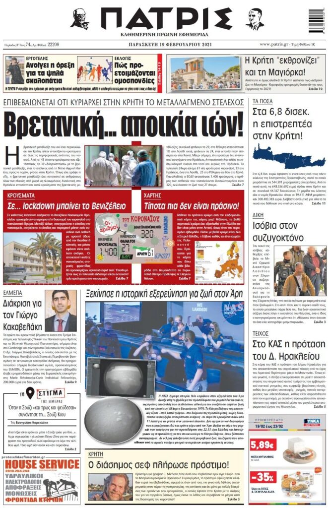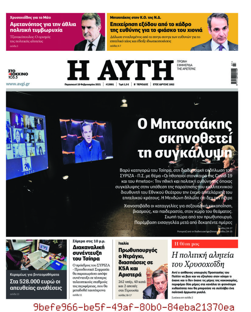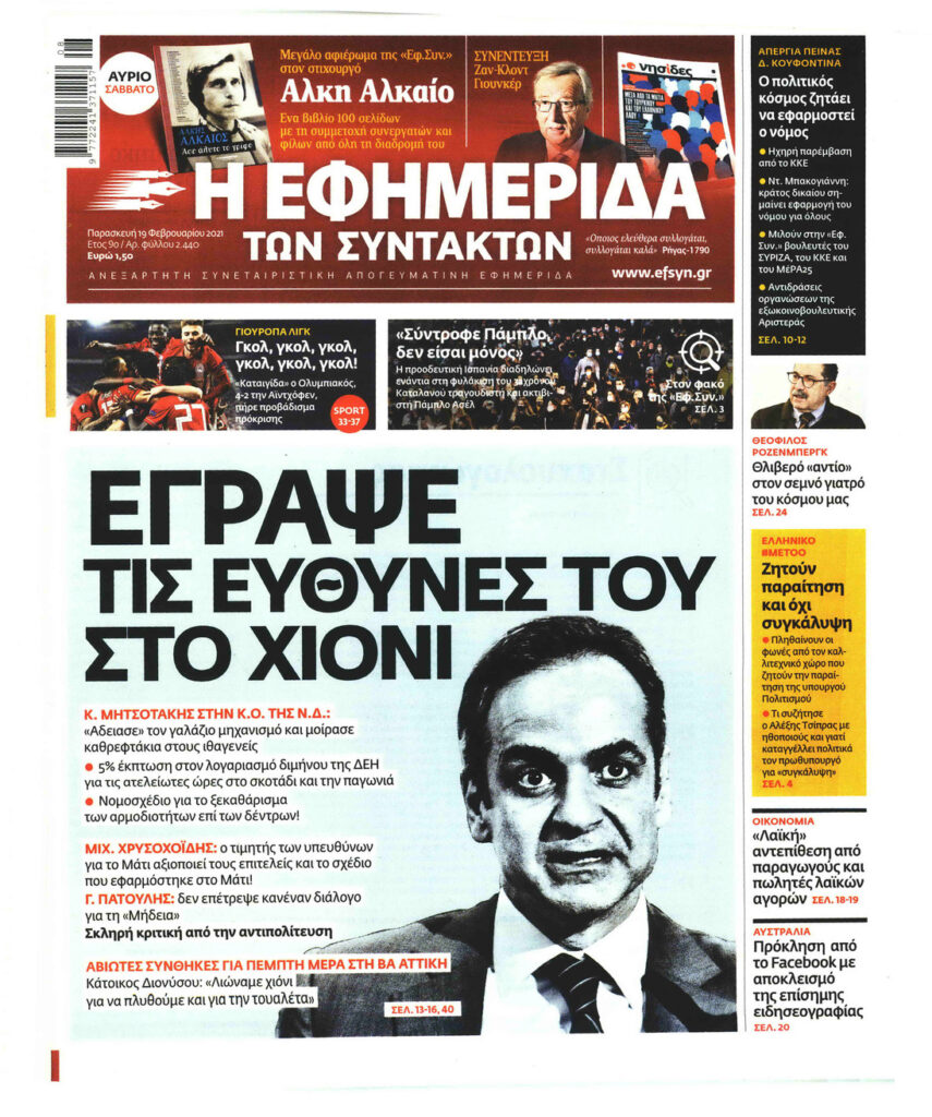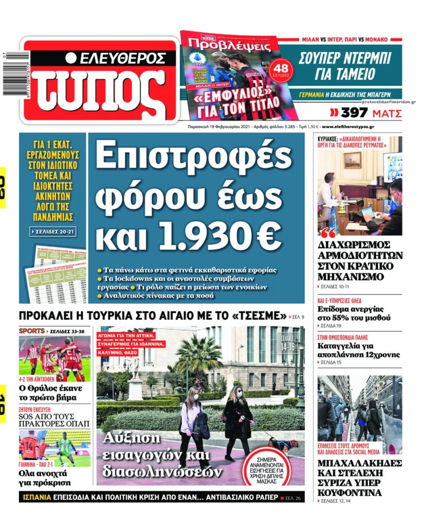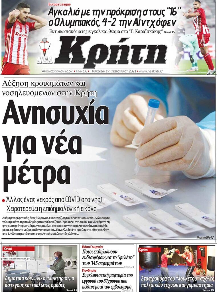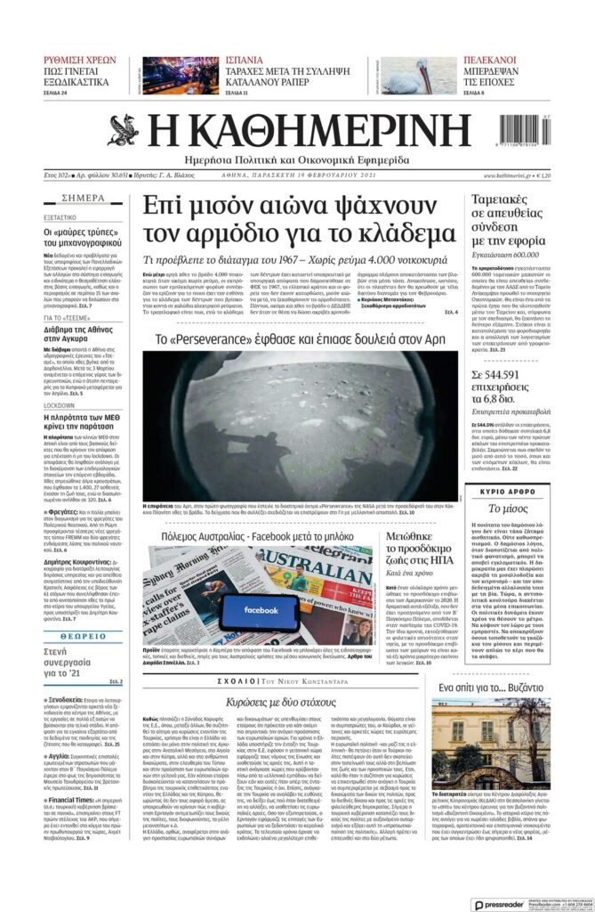 MEDIA Oι πρώτες σελίδες των εφημερίδων, σήμερα Παρασκευή, 19 Φεβρουαρίου FacebookTwitterPinterestWhatsApp Oι πρώτες σελίδες των εφημερίδων, σήμερα Παρασκευή, 19 Φεβρουαρίου: