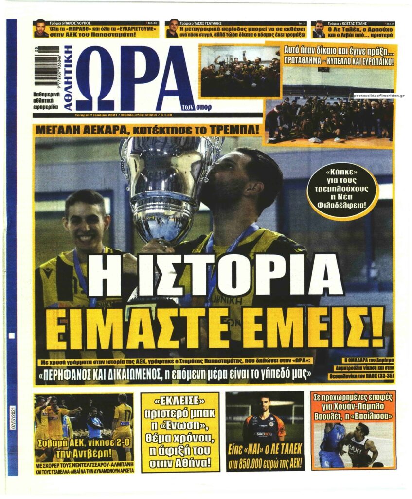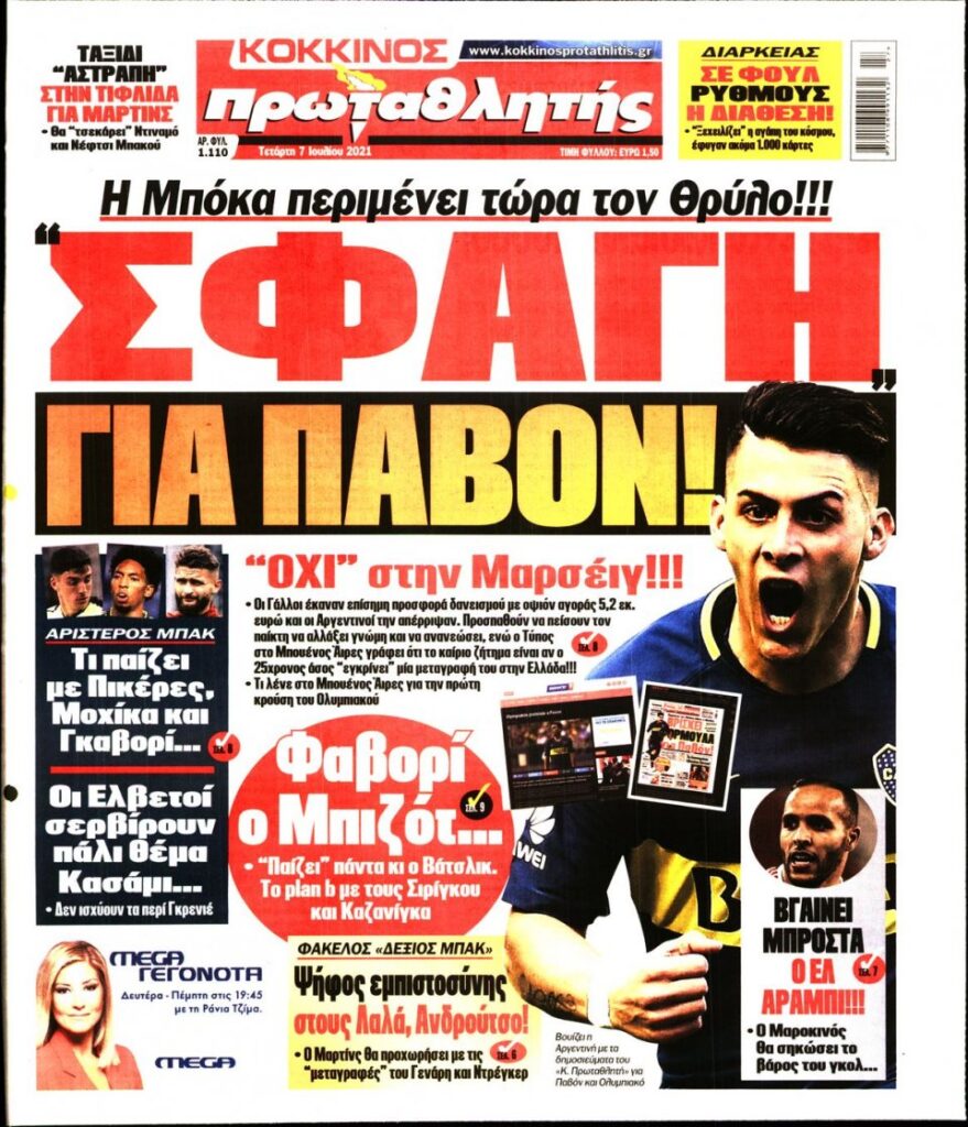 MEDIA Tα πρωτοσέλιδα των αθλητικών εφημερίδων, σήμερα Τετάρτη 7 Ιουλίου FacebookTwitterPinterestWhatsApp Tα πρωτοσέλιδα των αθλητικών εφημερίδων, σήμερα Τετάρτη 7 Ιουλίου: