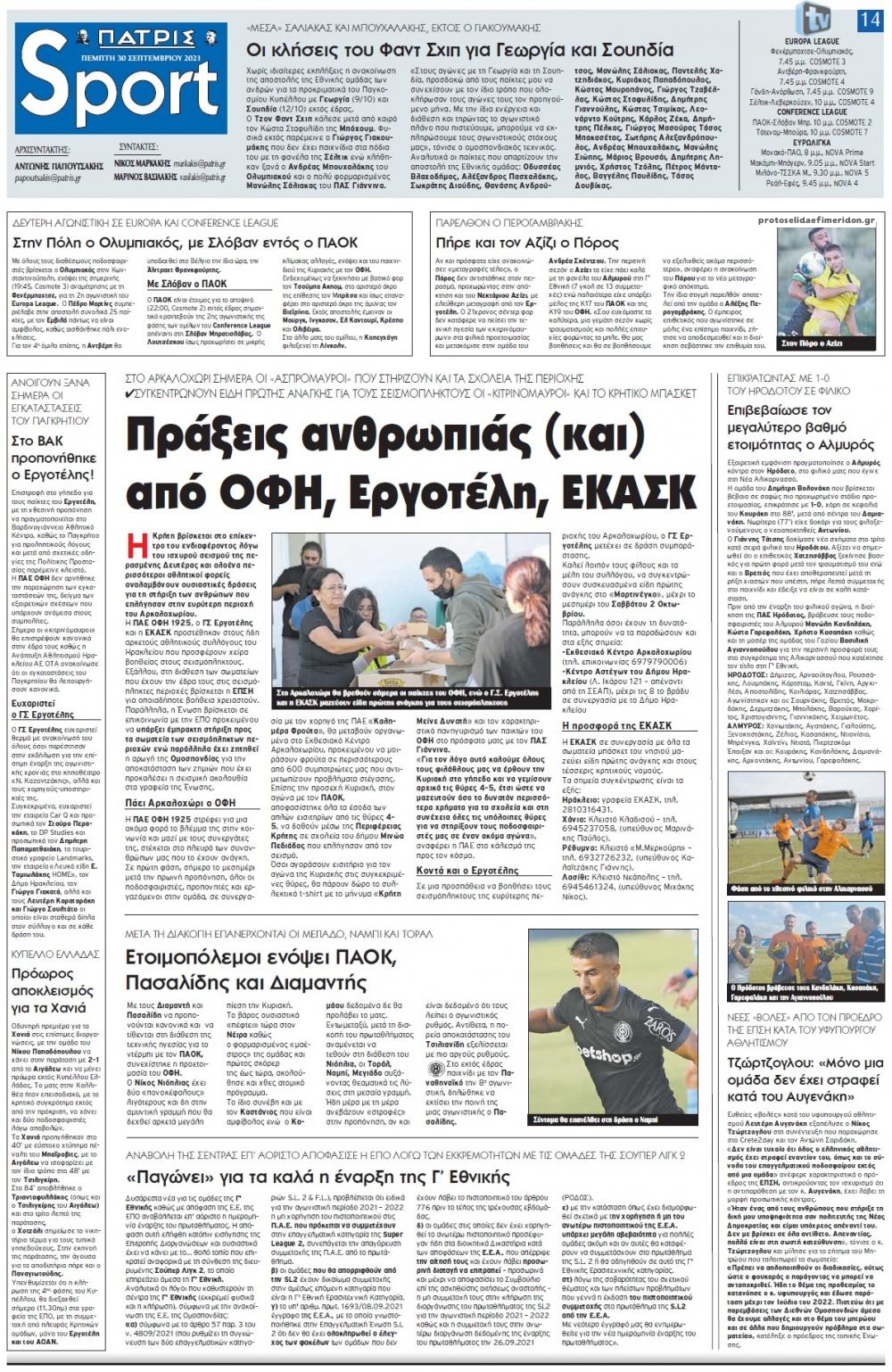 MEDIA Tα αθλητικά πρωτοσέλιδα, σήμερα Πέμπτη 30 Σεπτεμβρίου FacebookTwitterPinterestWhatsApp Tα αθλητικά πρωτοσέλιδα, σήμερα Πέμπτη 30 Σεπτεμβρίου