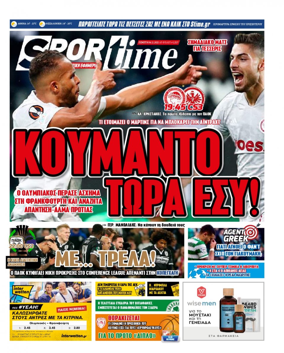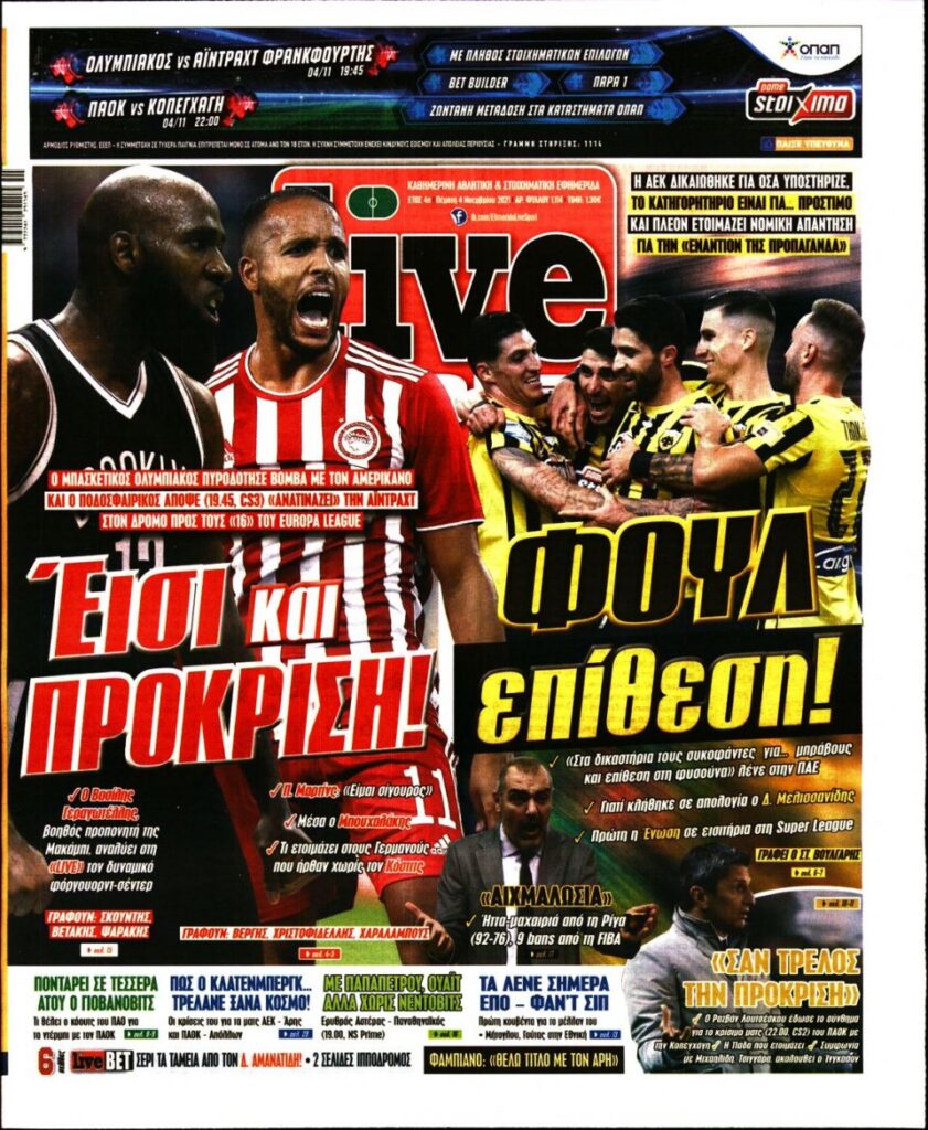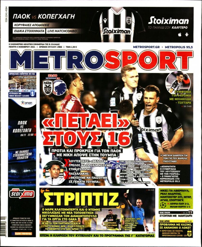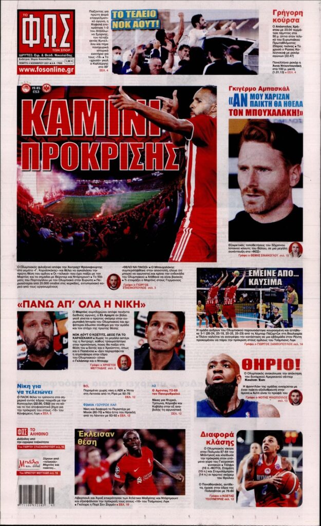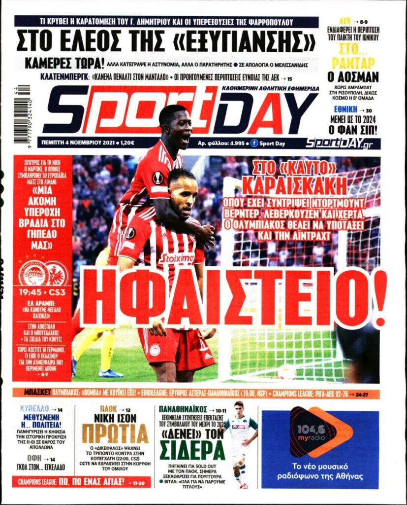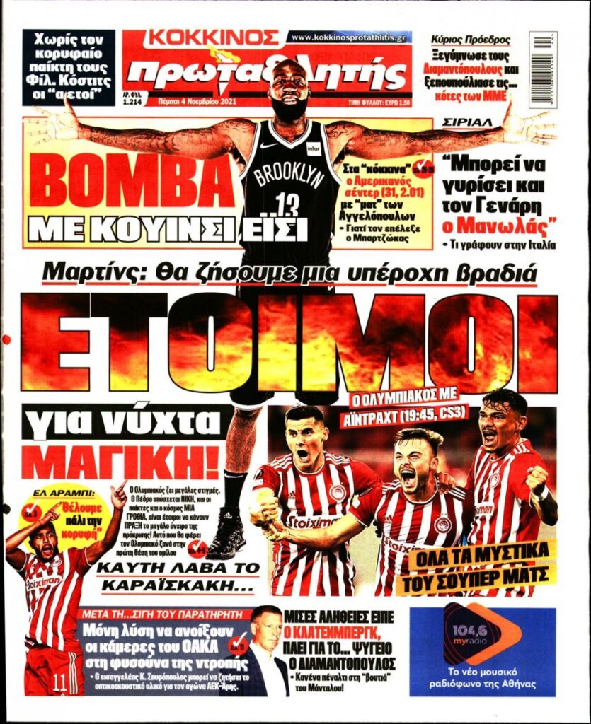 MEDIA Tα αθλητικά πρωτοσέλιδα, σήμερα Πέμπτη 4 Νοεμβρίου FacebookTwitterPinterestWhatsApp Tα αθλητικά πρωτοσέλιδα, σήμερα Πέμπτη 4 Νοεμβρίου