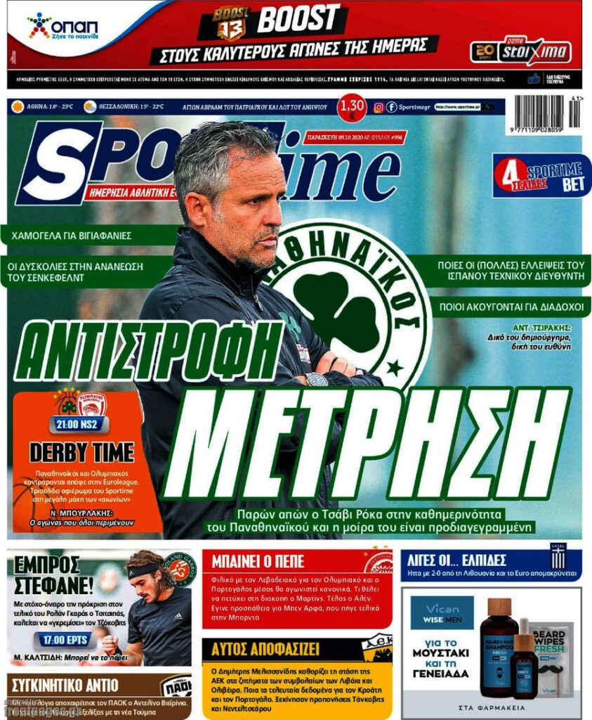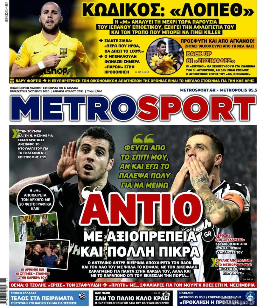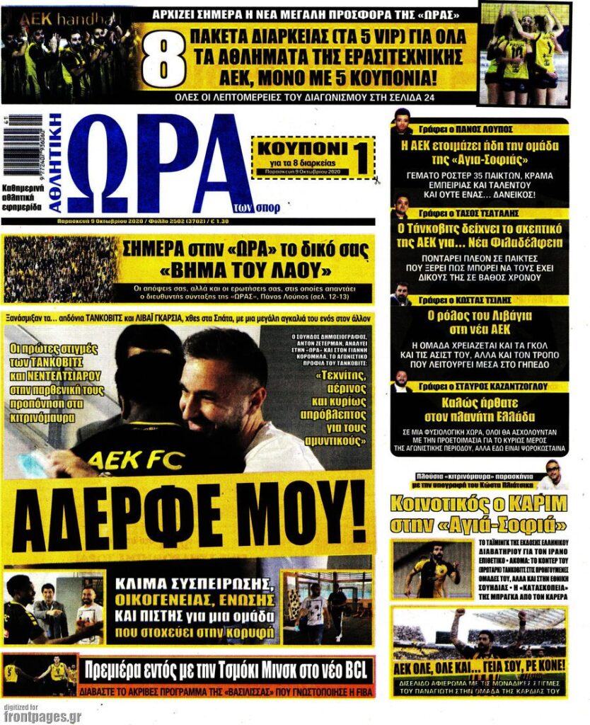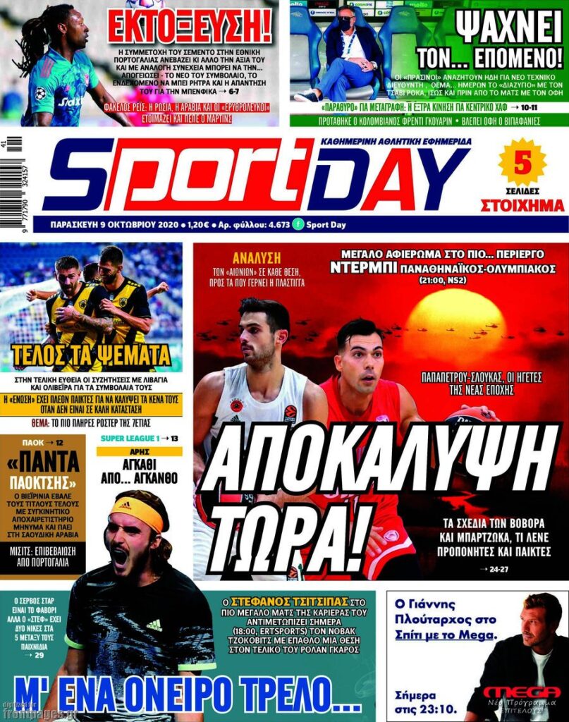 MEDIA Tα πρωτοσέλιδα των αθλητικών εφημερίδων, σήμερα 9 Οκτωβρίου FacebookTwitterPinterestWhatsApp Tα πρωτοσέλιδα των αθλητικών εφημερίδων, σήμερα 9 Οκτωβρίου: