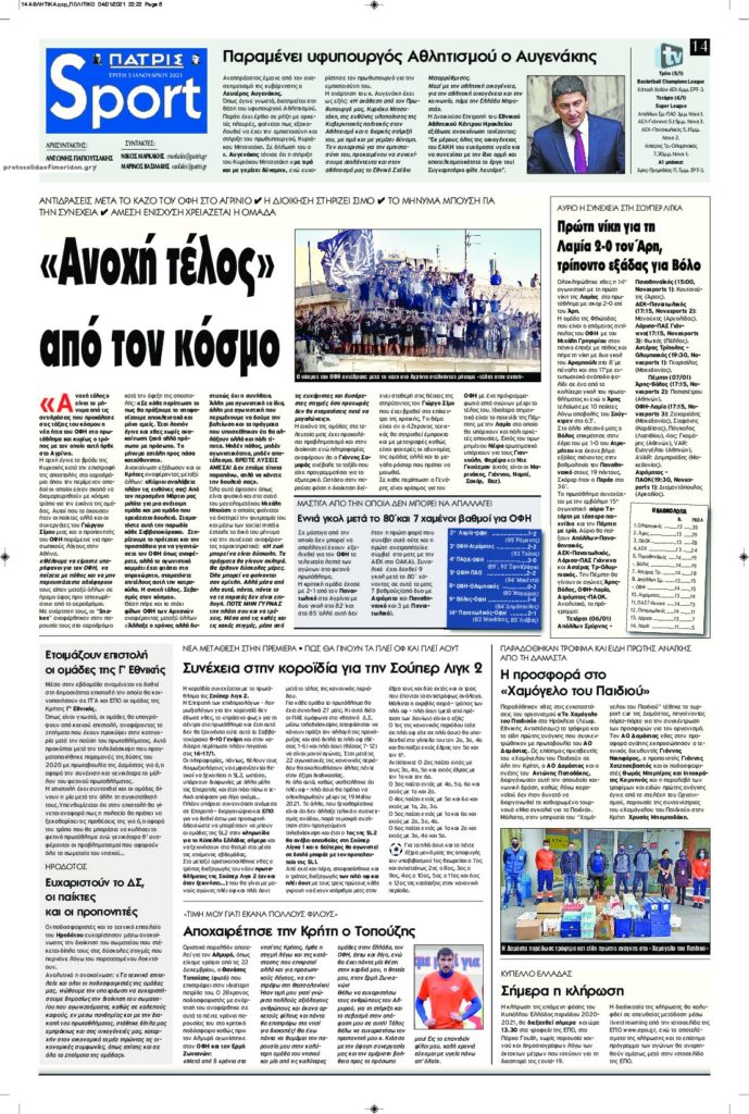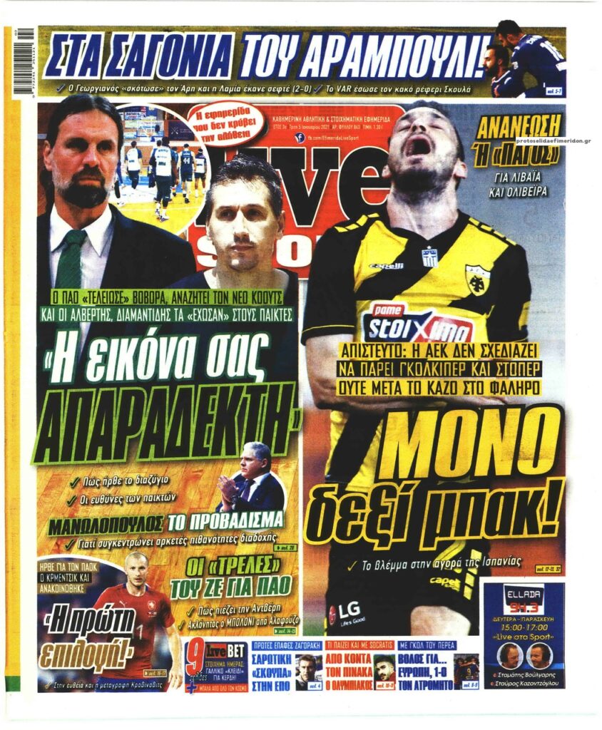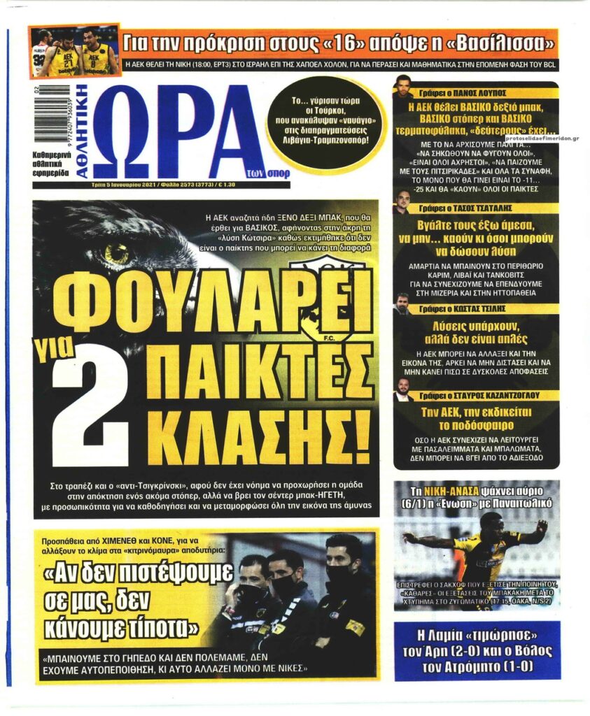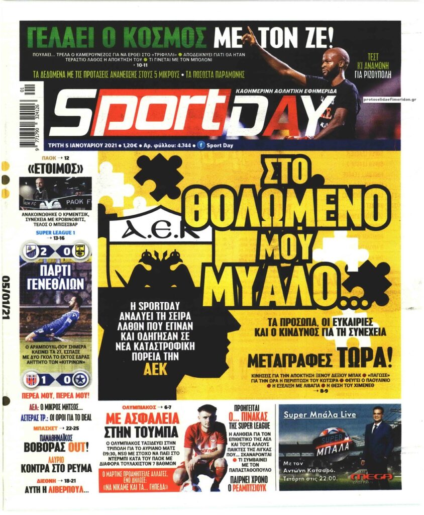 MEDIA Tα πρωτοσέλιδα των αθλητικών εφημερίδων, σήμερα Τρίτη 5 Ιανουαρίου FacebookTwitterPinterestWhatsApp Tα πρωτοσέλιδα των αθλητικών εφημερίδων, σήμερα Τρίτη 5 Ιανουαρίου: