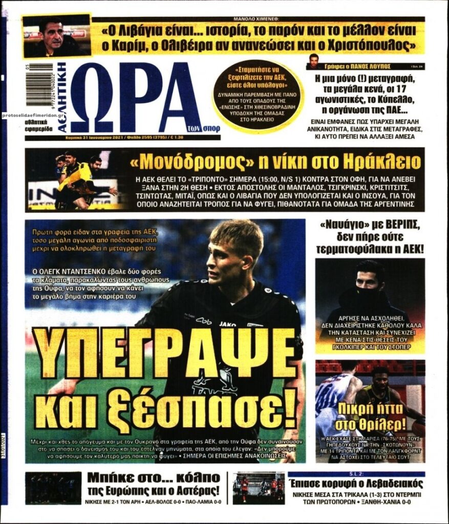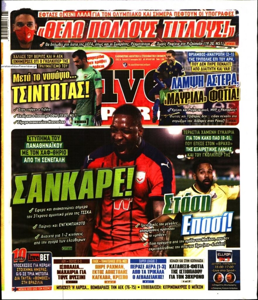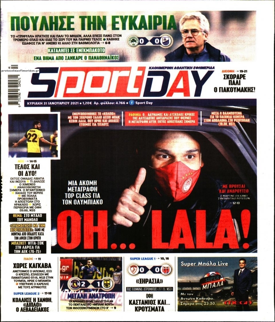 MEDIA Tα πρωτοσέλιδα των αθλητικών εφημερίδων, σήμερα Κυριακή 31 Ιανουαρίου FacebookTwitterPinterestWhatsApp Tα πρωτοσέλιδα των αθλητικών εφημερίδων, σήμερα Κυριακή 31 Ιανουαρίου: