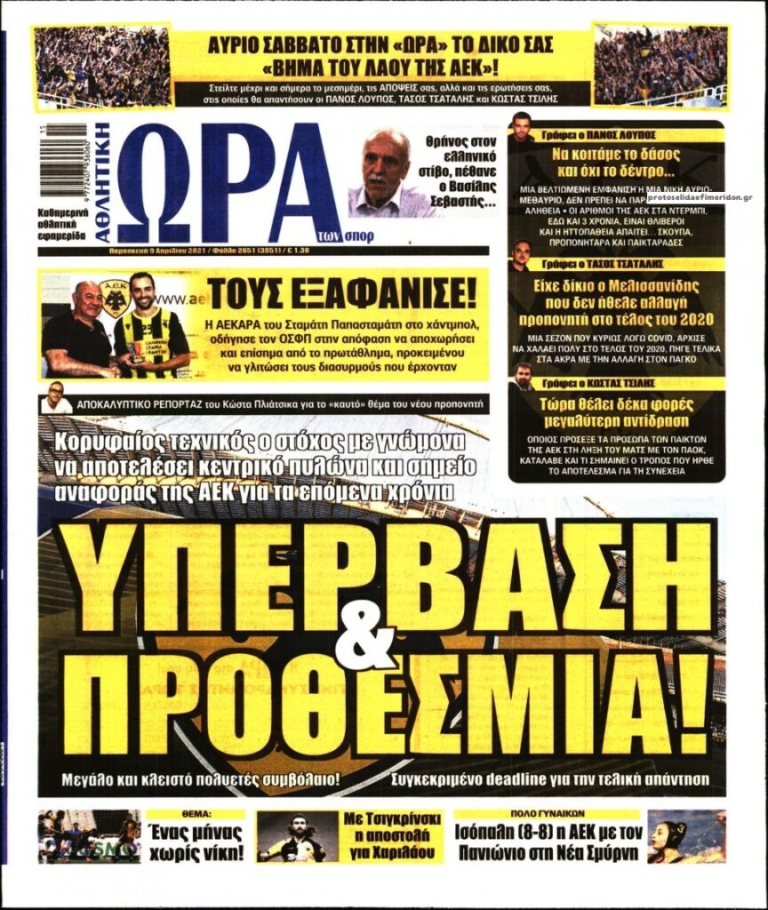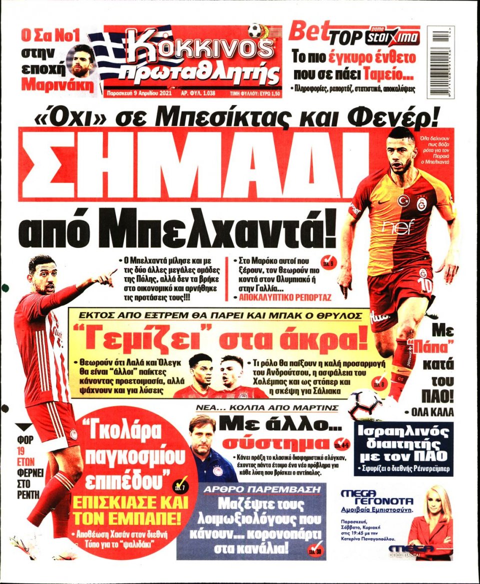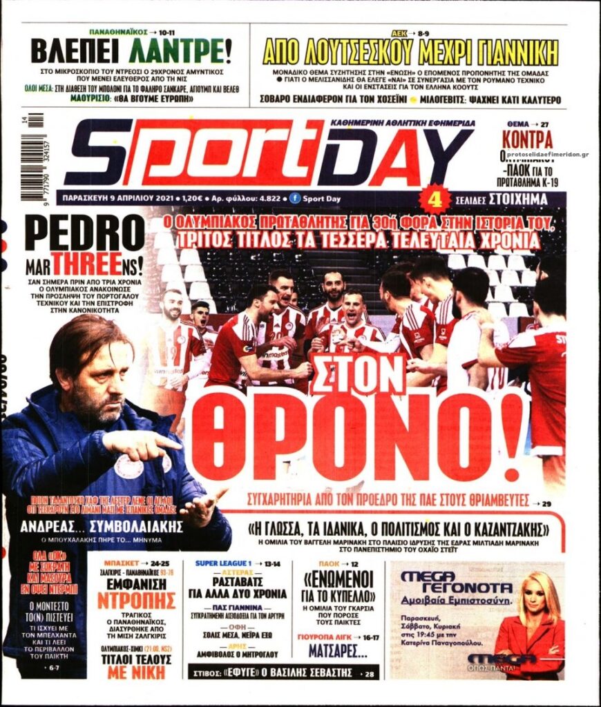 MEDIA Tα πρωτοσέλιδα των αθλητικών εφημερίδων, σήμερα 9 Απριλίου FacebookTwitterPinterestWhatsApp Tα πρωτοσέλιδα των αθλητικών εφημερίδων, σήμερα 9 Απριλίου: