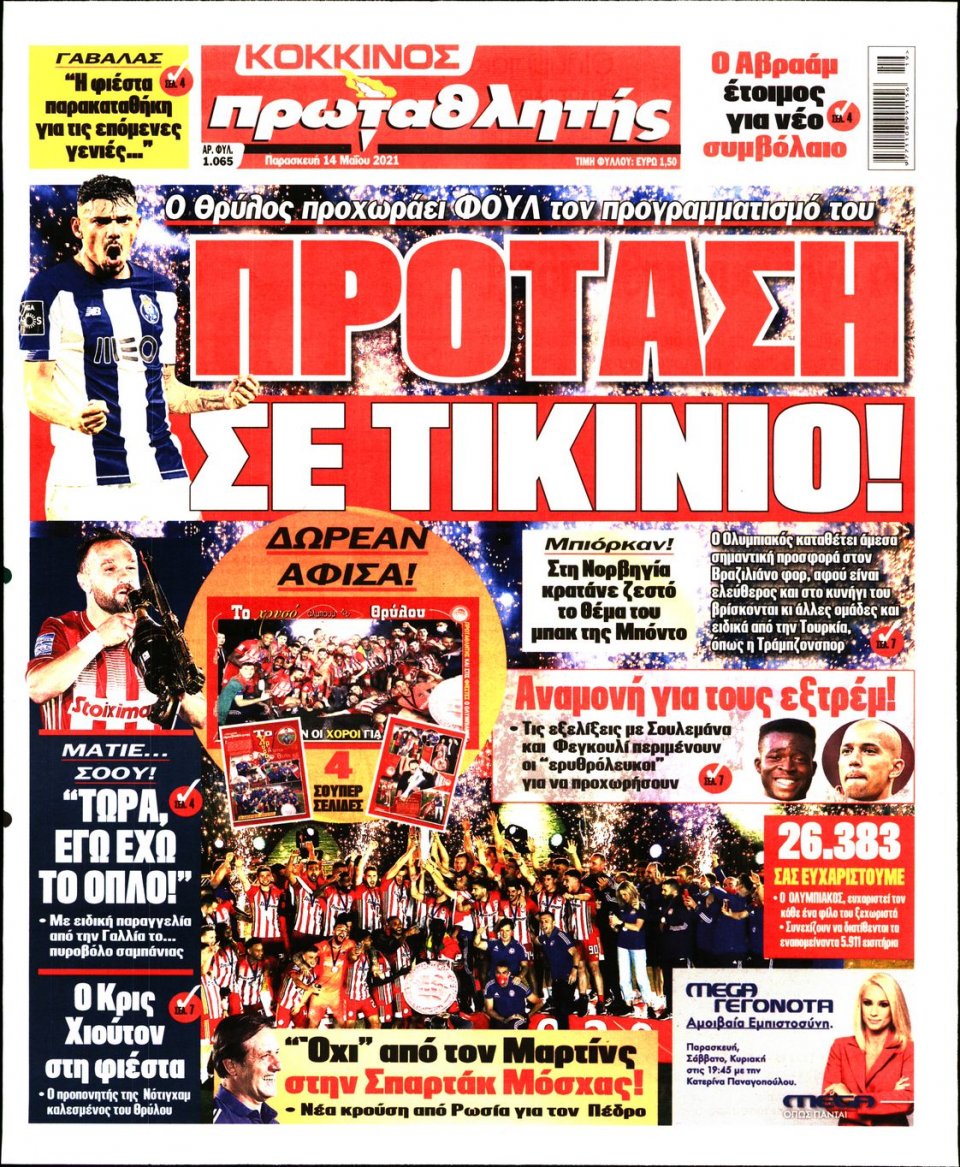 MEDIA Tα πρωτοσέλιδα των αθλητικών εφημερίδων, σήμερα Παρασκευή, 14 Μαΐου FacebookTwitterPinterestWhatsApp Tα πρωτοσέλιδα των αθλητικών εφημερίδων, σήμερα Παρασκευή, 14 Μαΐου: