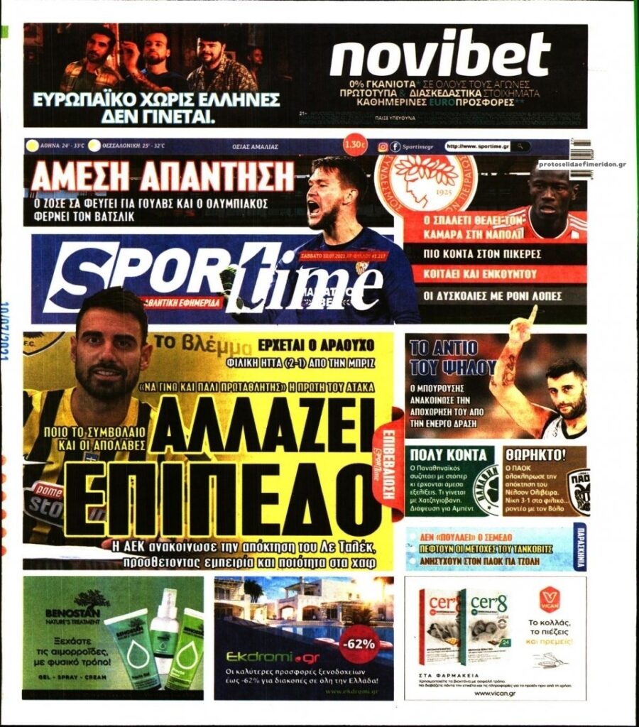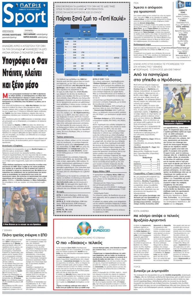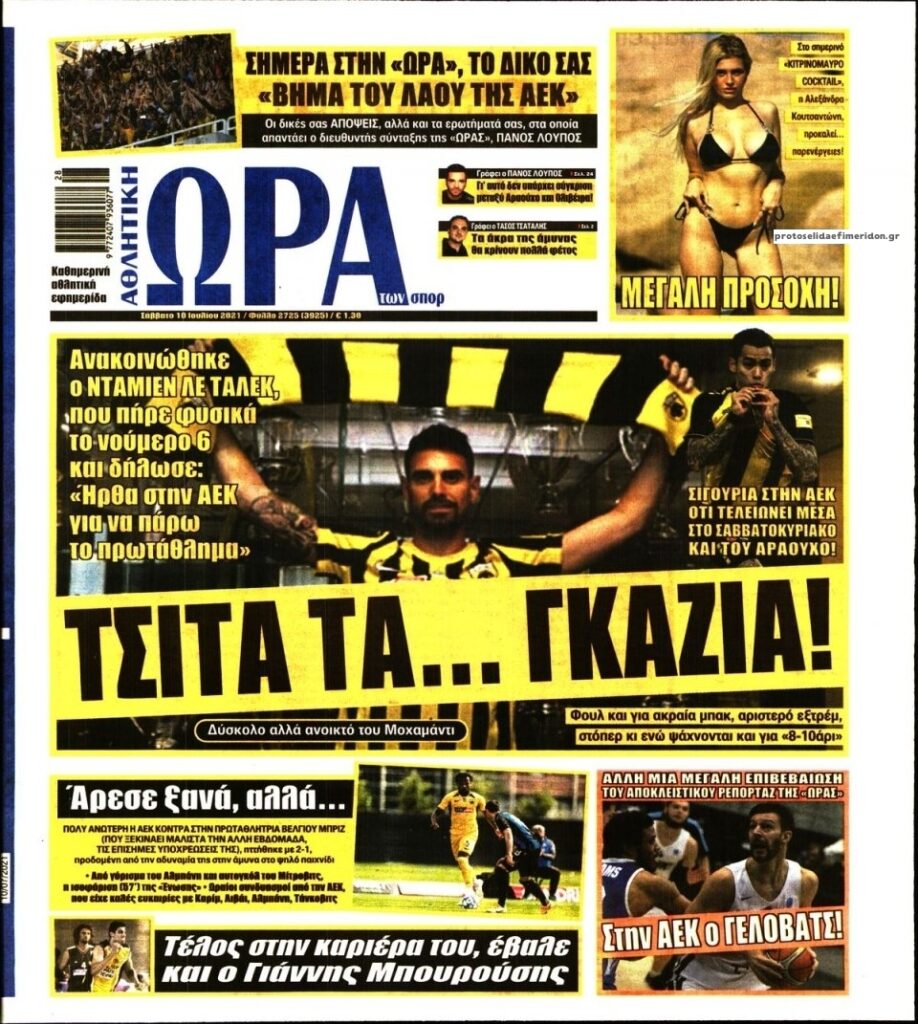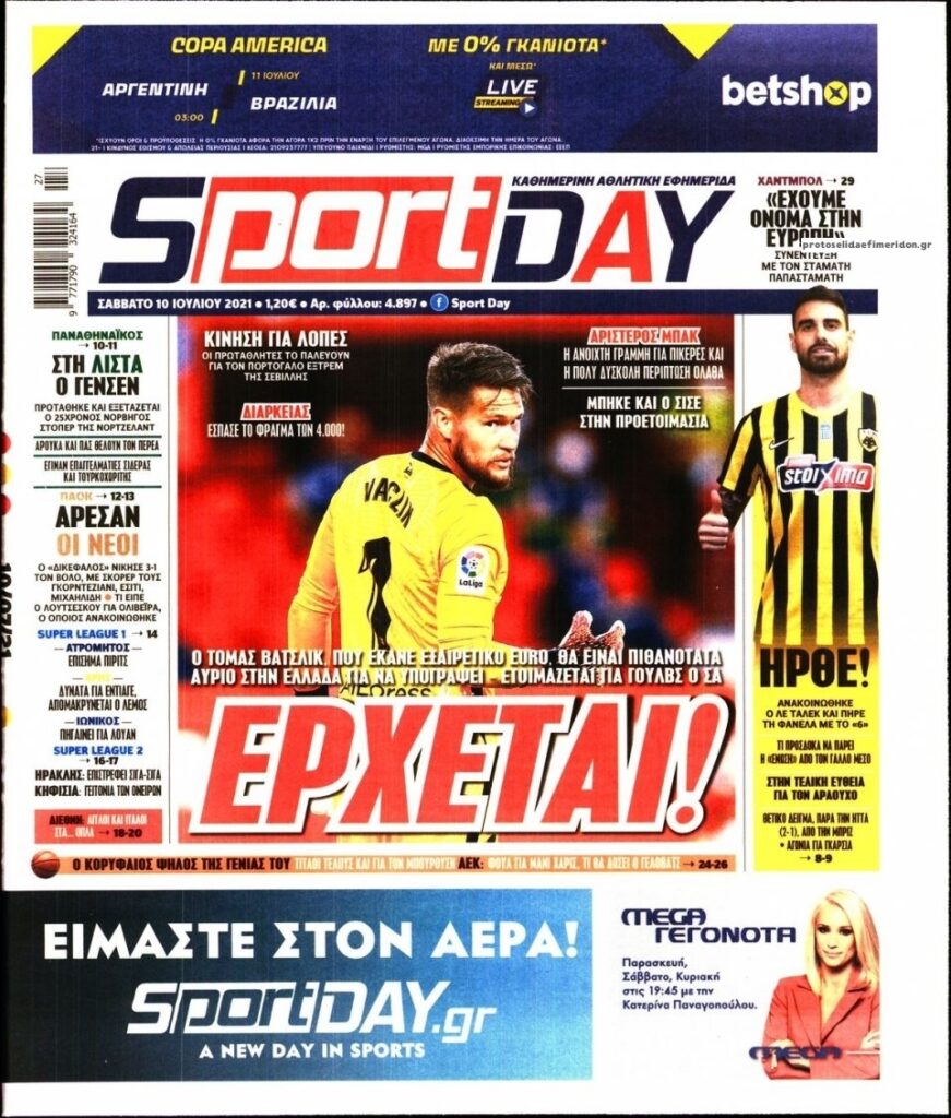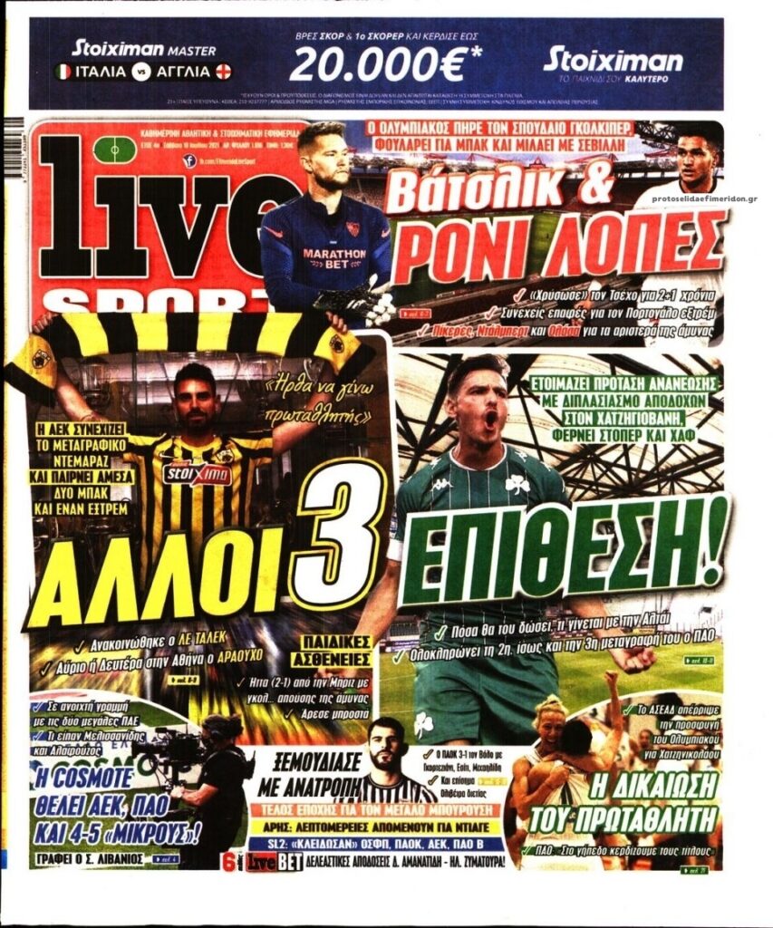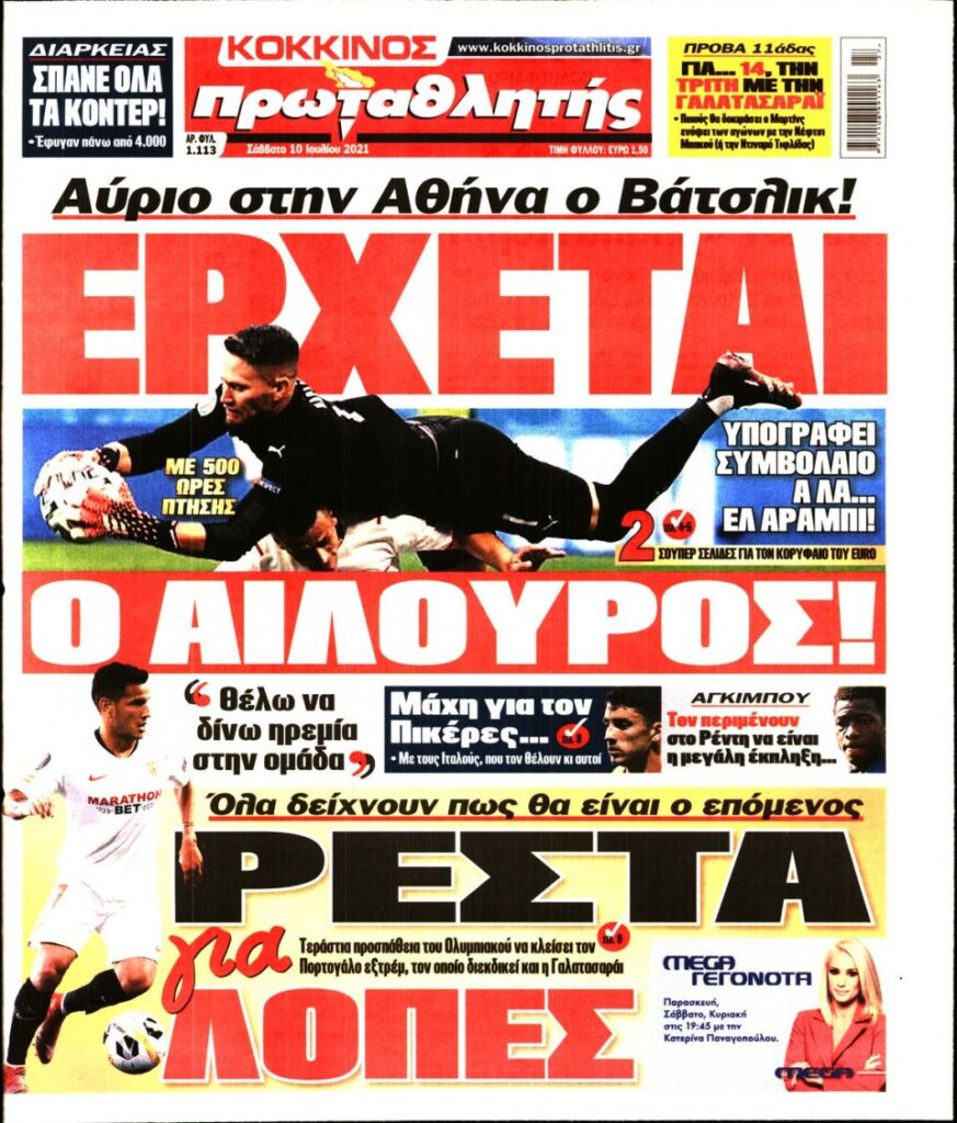 MEDIA Tα πρωτοσέλιδα των αθλητικών εφημερίδων, σήμερα Σάββατο 10 Ιουλίου FacebookTwitterPinterestWhatsApp Tα πρωτοσέλιδα των αθλητικών εφημερίδων, σήμερα Σάββατο 10 Ιουλίου: