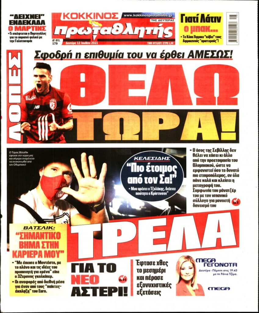MEDIA Tα πρωτοσέλιδα των αθλητικών εφημερίδων, σήμερα Δευτέρα 12 Ιουλίου FacebookTwitterPinterestWhatsApp Tα πρωτοσέλιδα των αθλητικών εφημερίδων, σήμερα Δευτέρα 12 Ιουλίου: