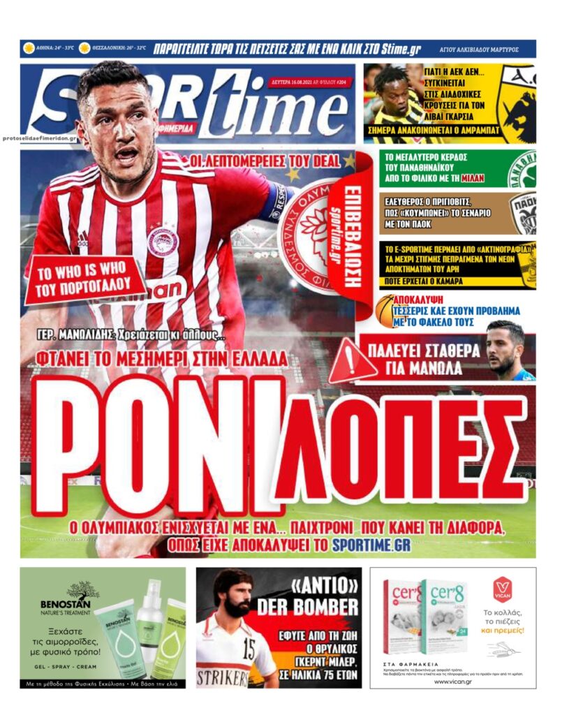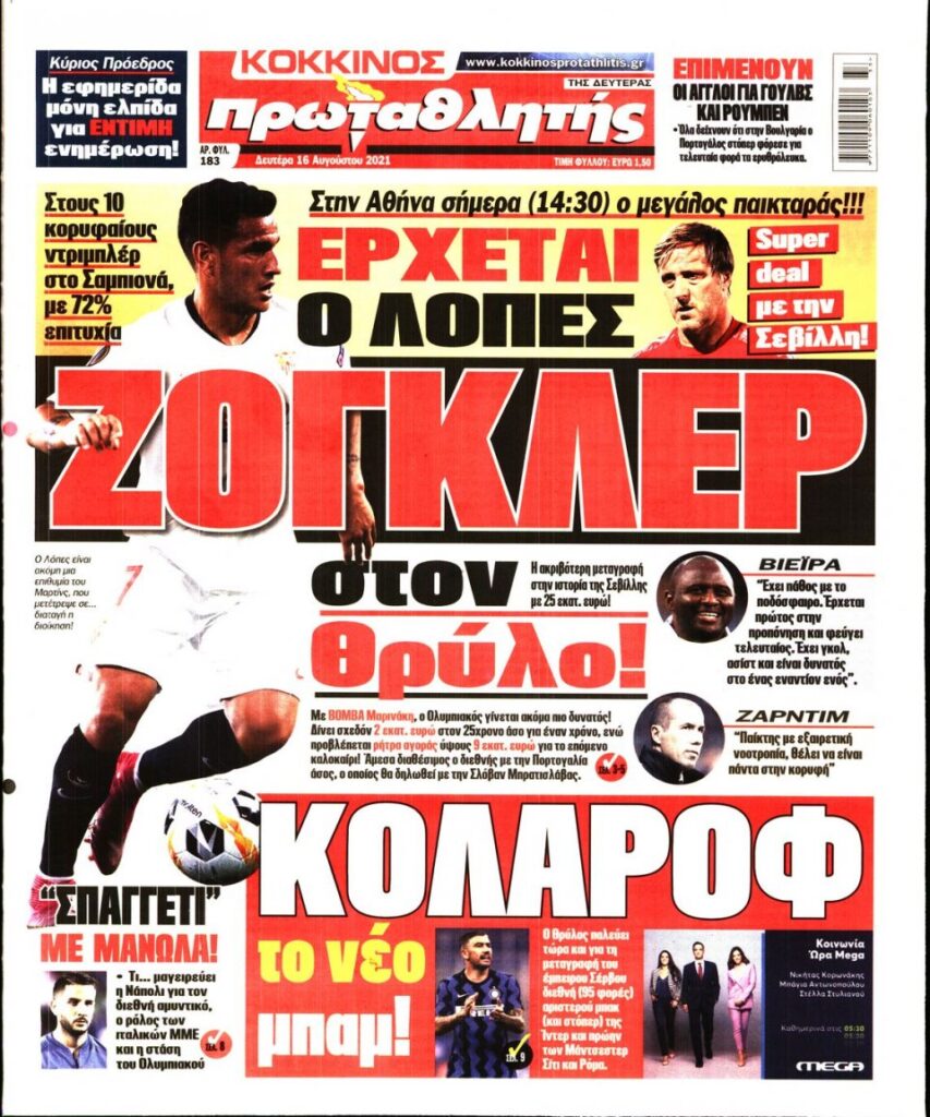 MEDIA Tα πρωτοσέλιδα των αθλητικών εφημερίδων, σήμερα Δευτέρα 16 Αυγούστου FacebookTwitterPinterestWhatsApp Tα πρωτοσέλιδα των αθλητικών εφημερίδων, σήμερα Δευτέρα 16 Αυγούστου