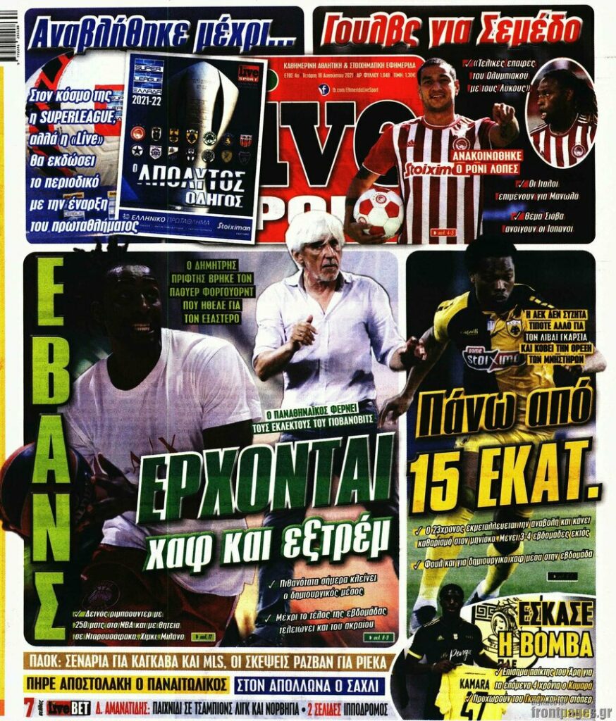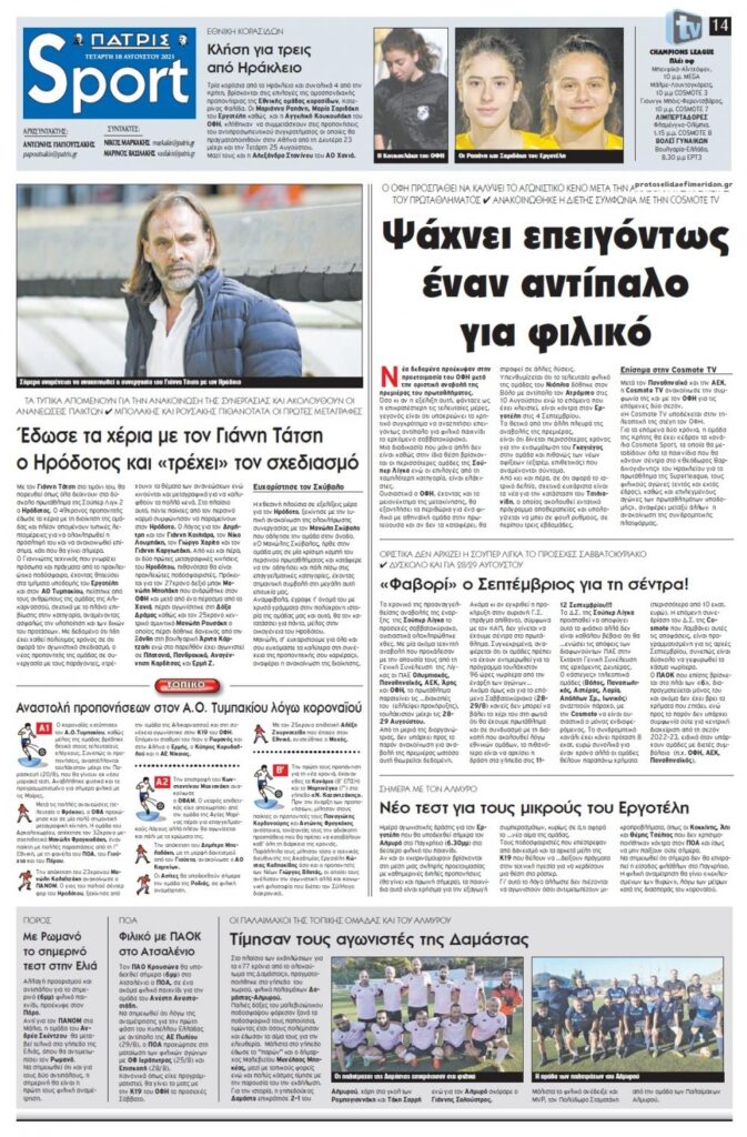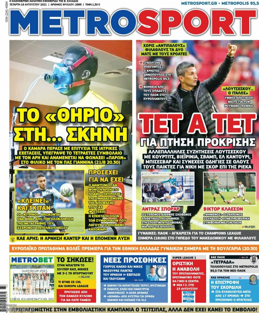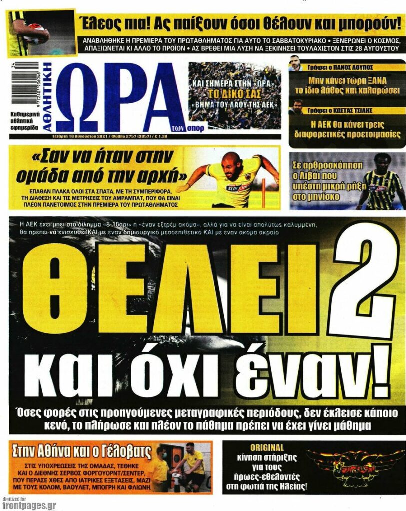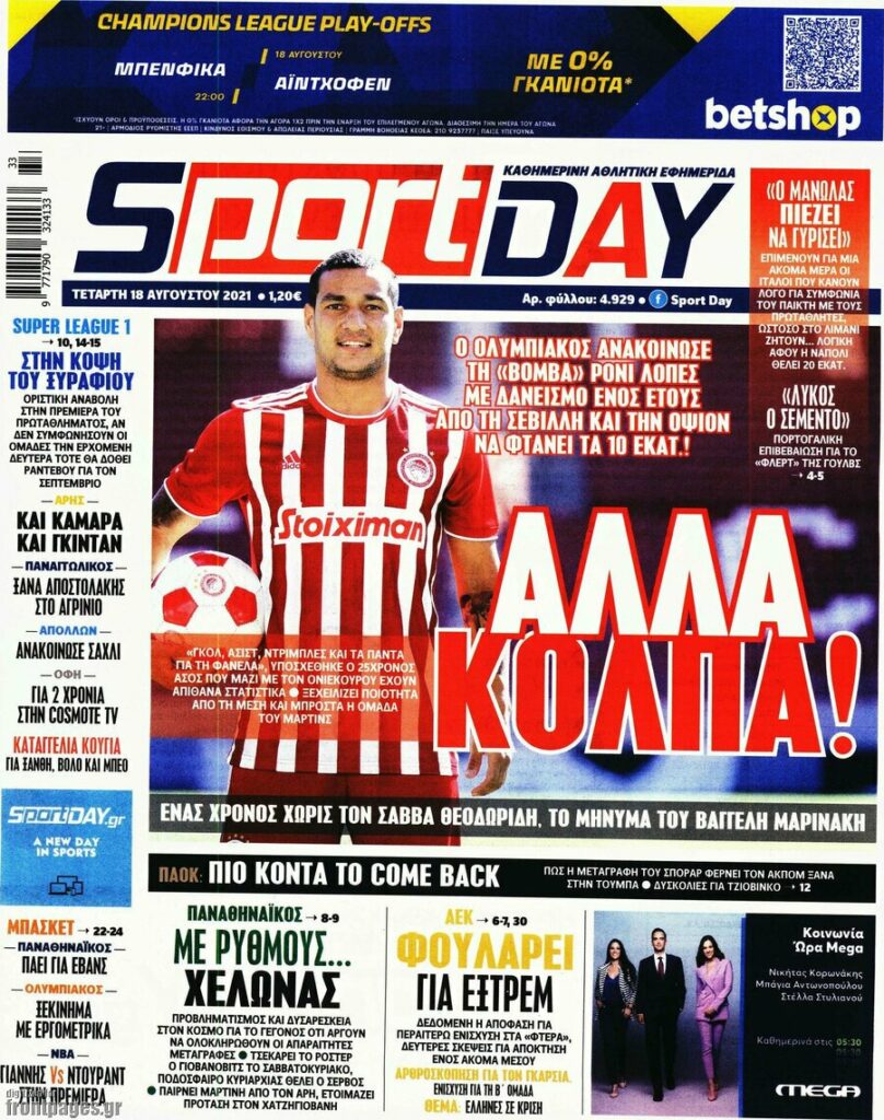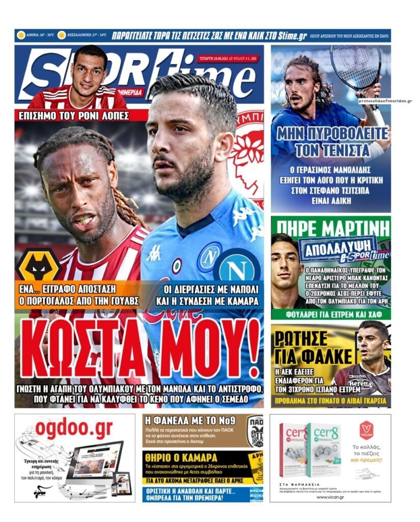MEDIA Tα πρωτοσέλιδα των αθλητικών εφημερίδων, σήμερα Τετάρτη 18 Αυγούστου FacebookTwitterPinterestWhatsApp Tα πρωτοσέλιδα των αθλητικών εφημερίδων, σήμερα Τετάρτη 18 Αυγούστου