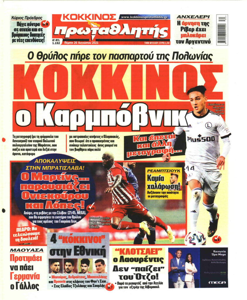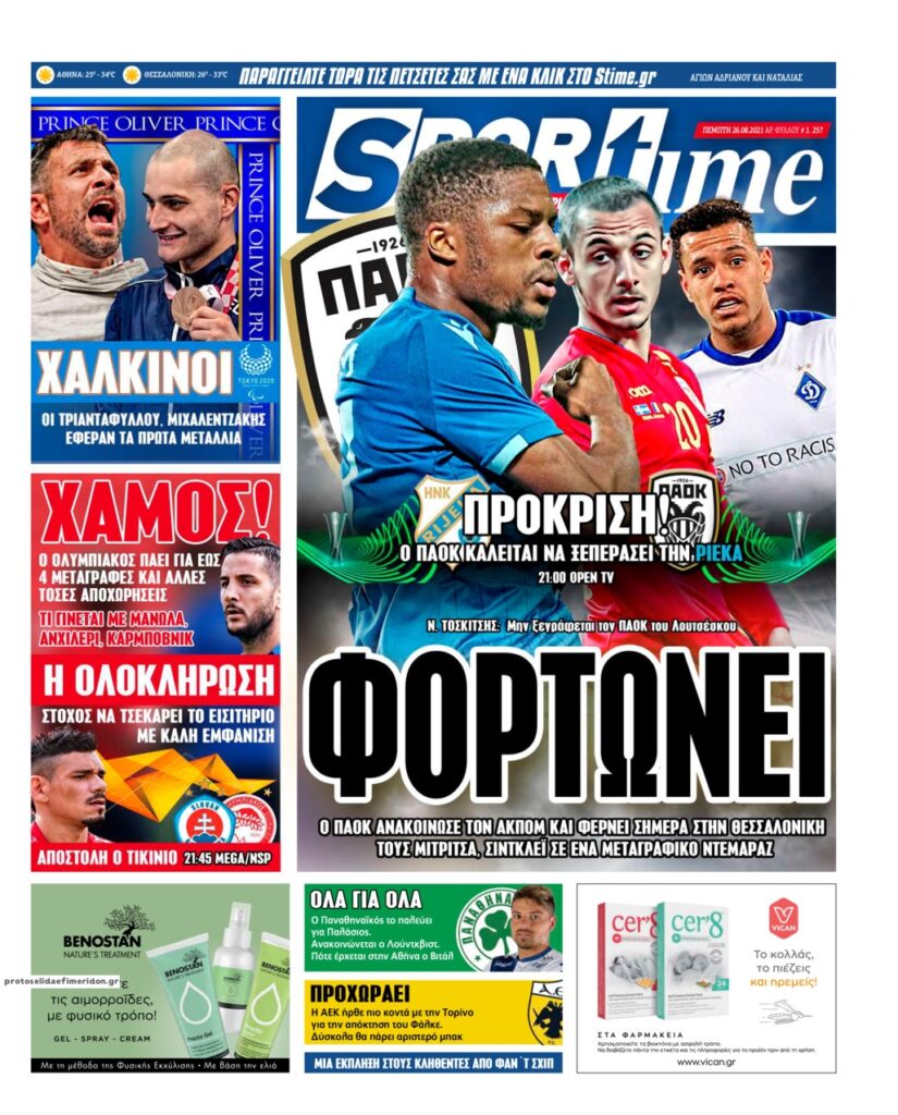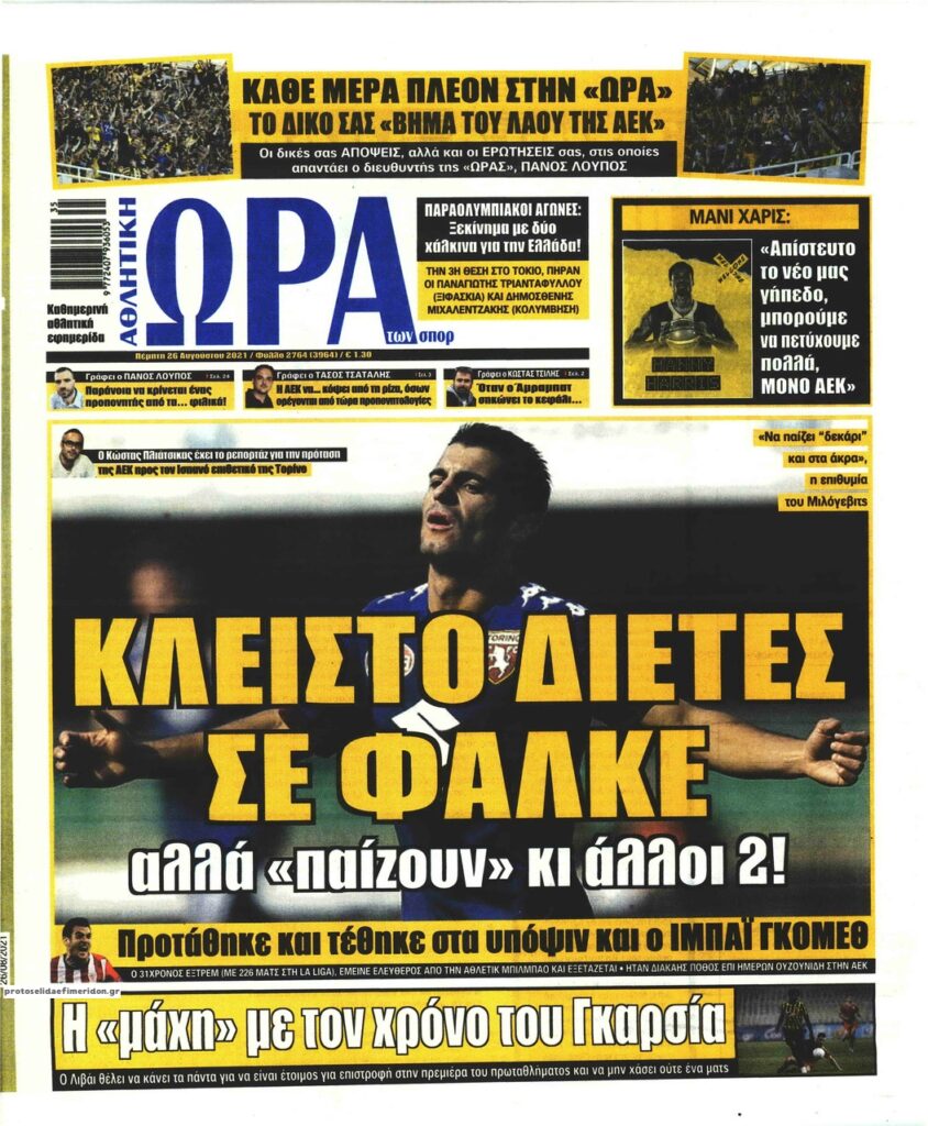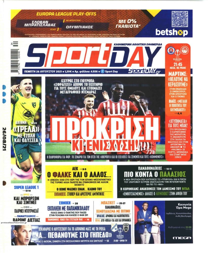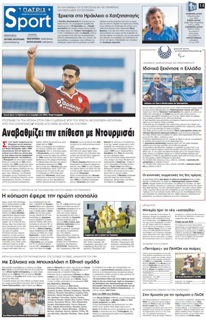 MEDIA Tα πρωτοσέλιδα των αθλητικών εφημερίδων, σήμερα Πέμπτη 26 Αυγούστου FacebookTwitterPinterestWhatsApp Tα πρωτοσέλιδα των αθλητικών εφημερίδων, σήμερα Πέμπτη 26 Αυγούστου