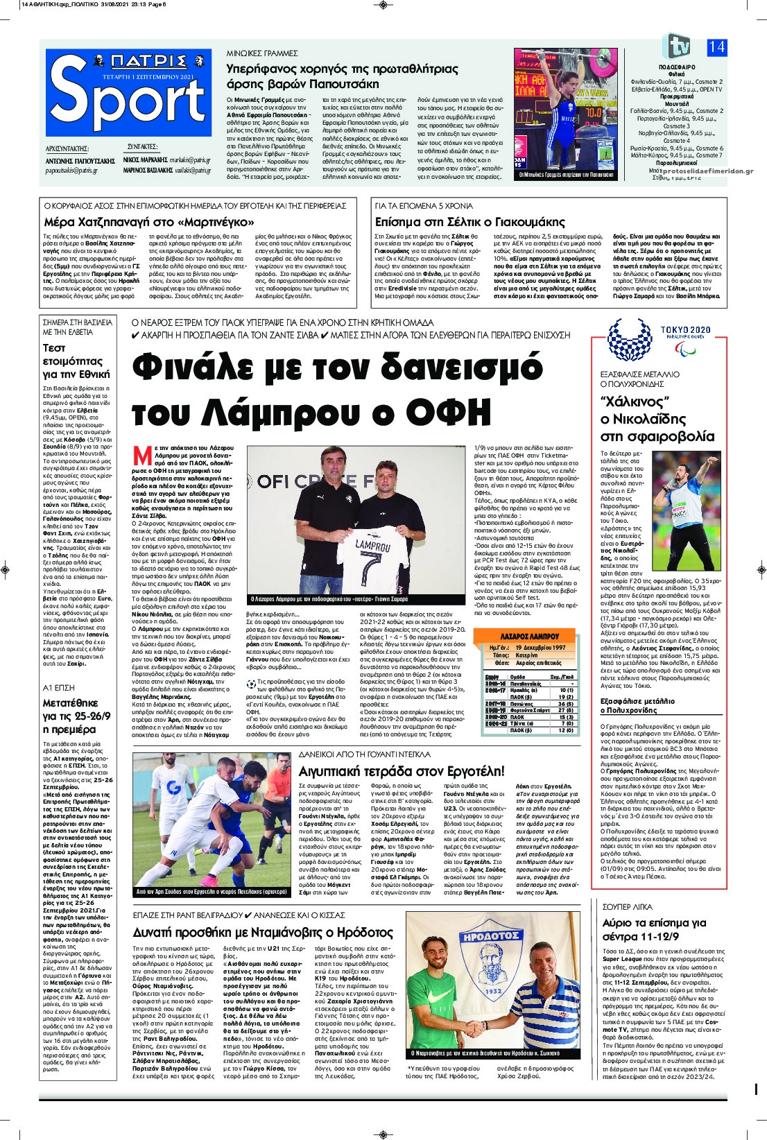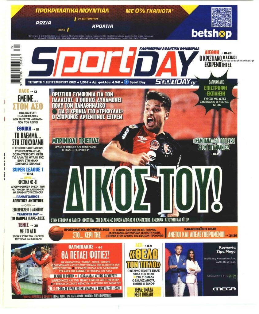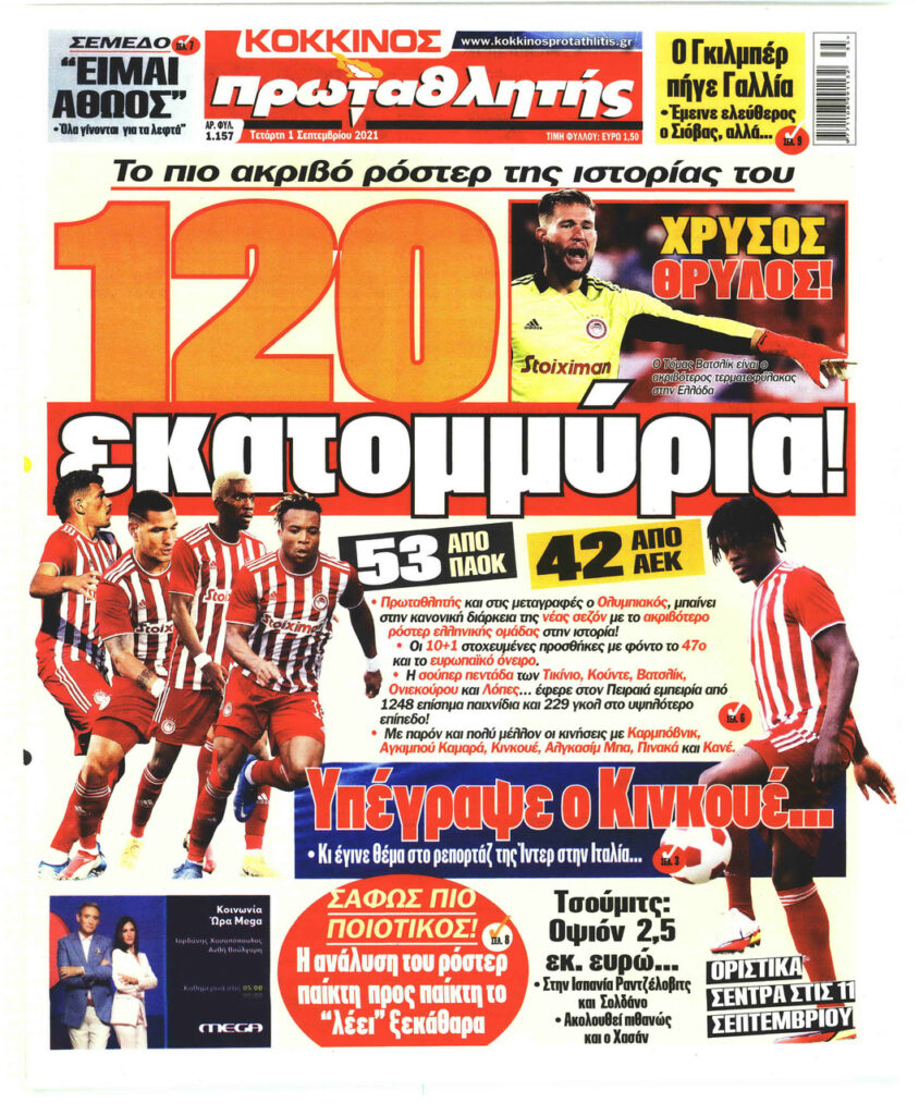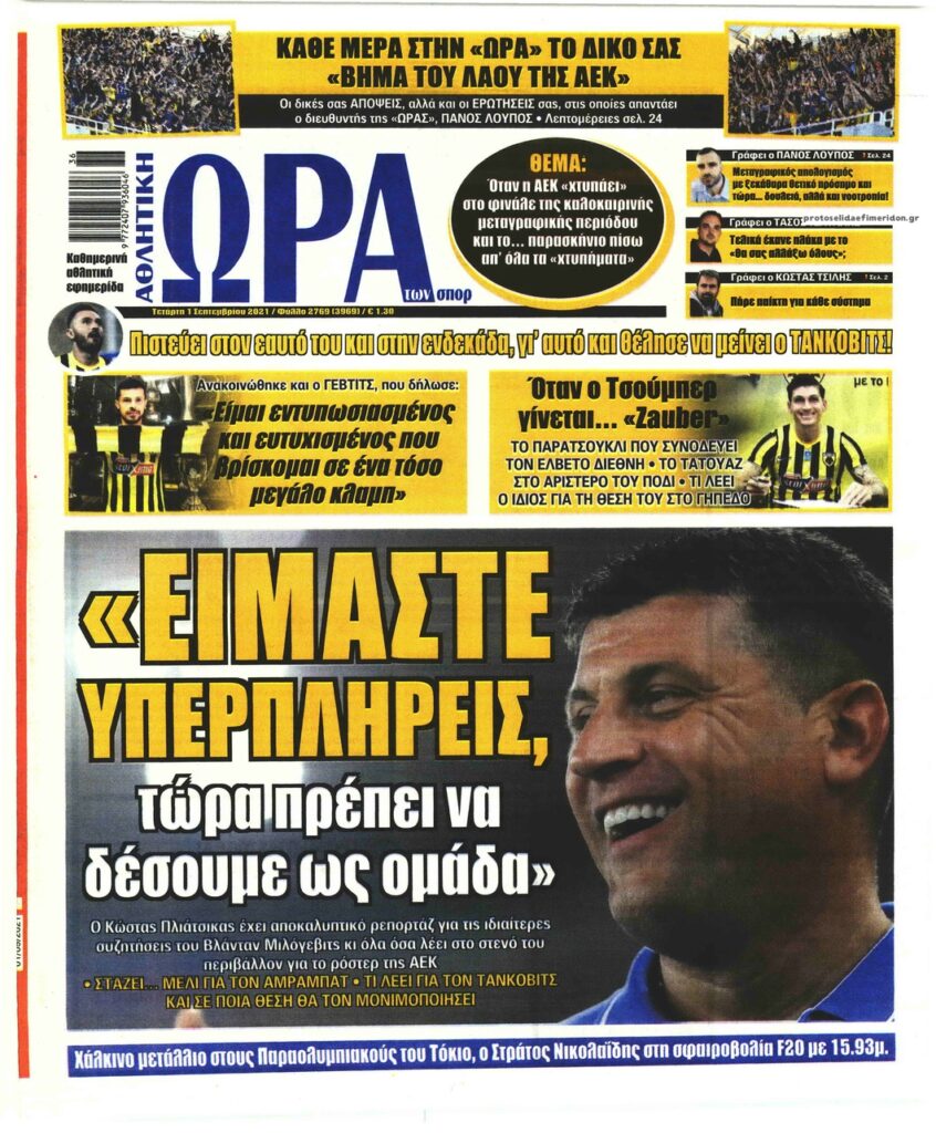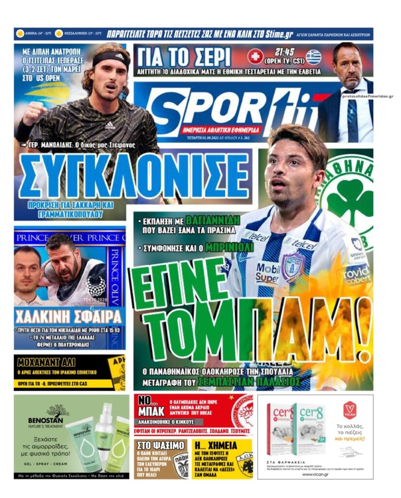 MEDIA Tα πρωτοσέλιδα των αθλητικών εφημερίδων, σήμερα Τετάρτη 1η Σεπτεμβρίου FacebookTwitterPinterestWhatsApp Tα πρωτοσέλιδα των αθλητικών εφημερίδων, σήμερα Τετάρτη 1η Σεπτεμβρίου