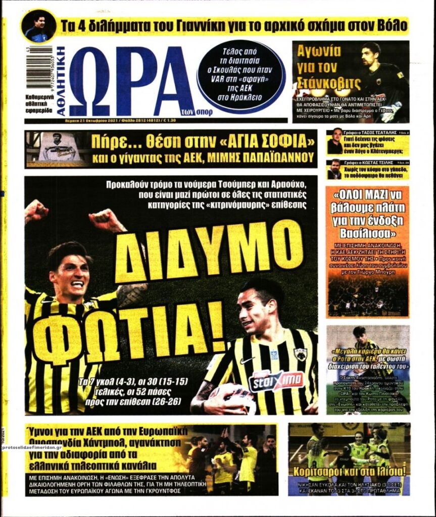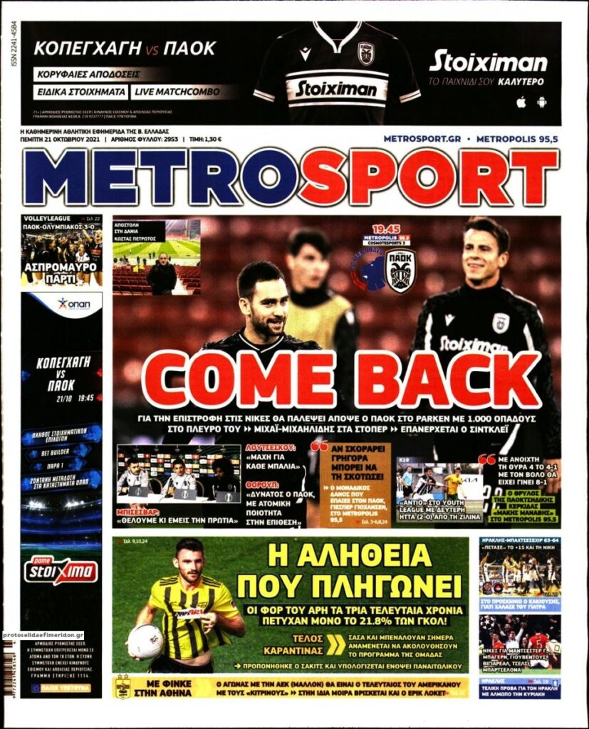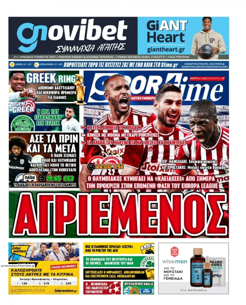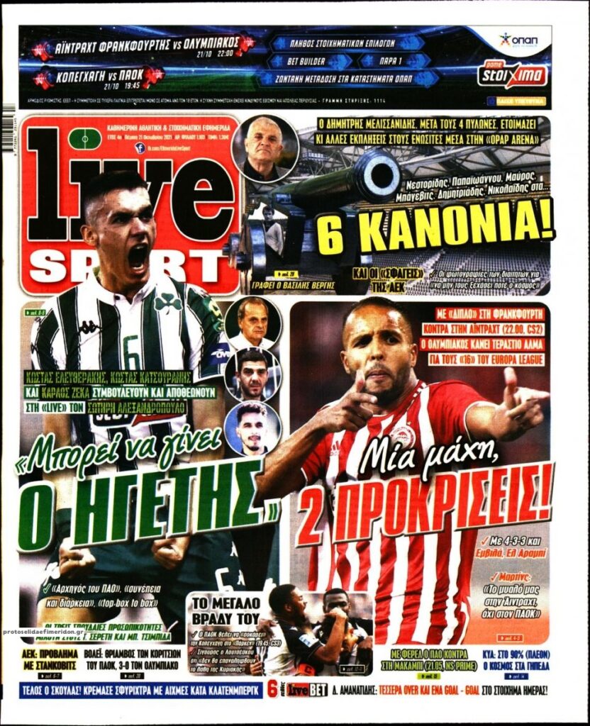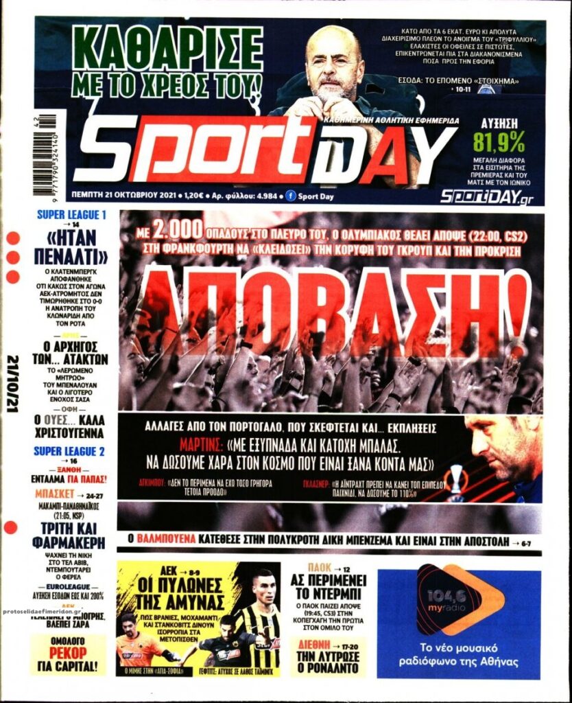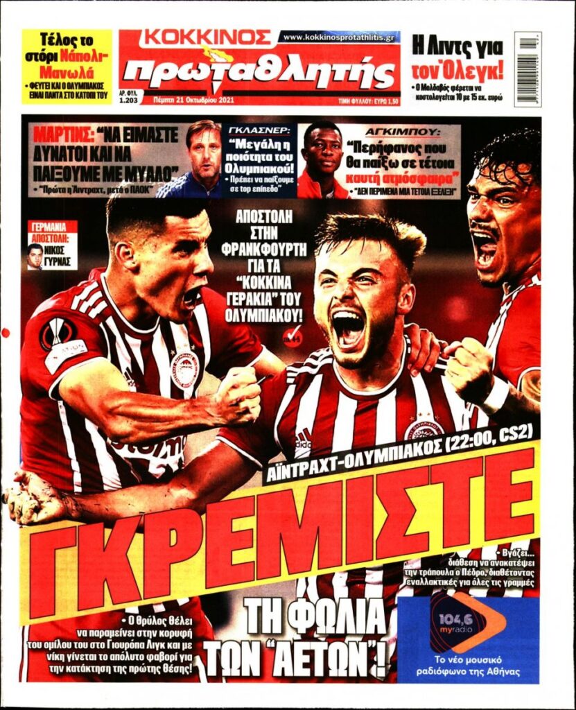 MEDIA Tα πρωτοσέλιδα των αθλητικών εφημερίδων, σήμερα Πέμπτη 21 Οκτωβρίου FacebookTwitterPinterestWhatsApp Tα πρωτοσέλιδα των αθλητικών εφημερίδων, σήμερα Πέμπτη 21 Οκτωβρίου